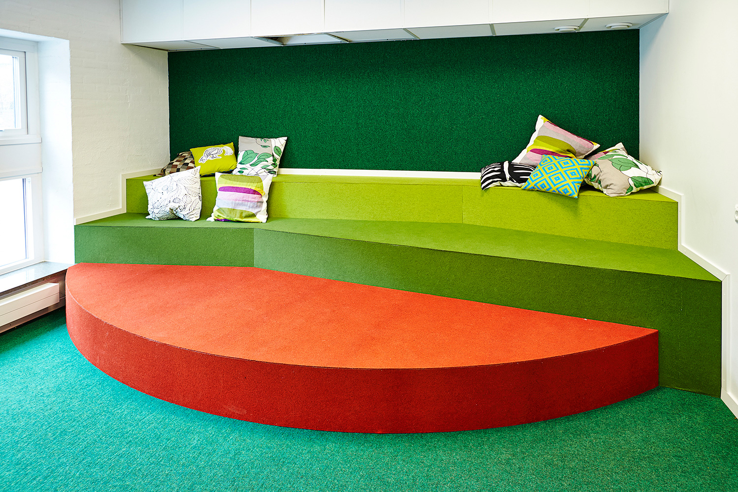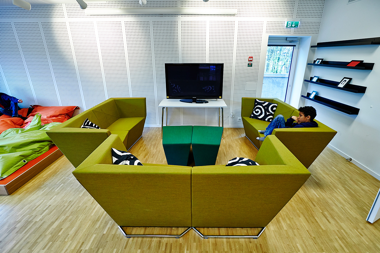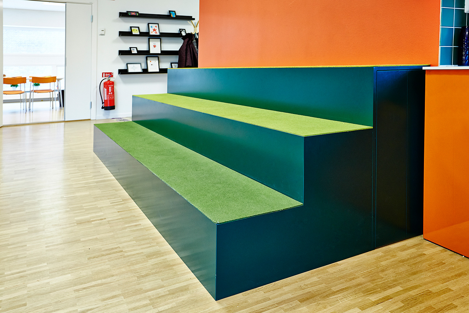 The new library was to become much more than “just” a library – tight cooperation and collaboration needed to be established with the local after school day care service. This new feeling of belonging together had to be clearly reflected in the interior design.