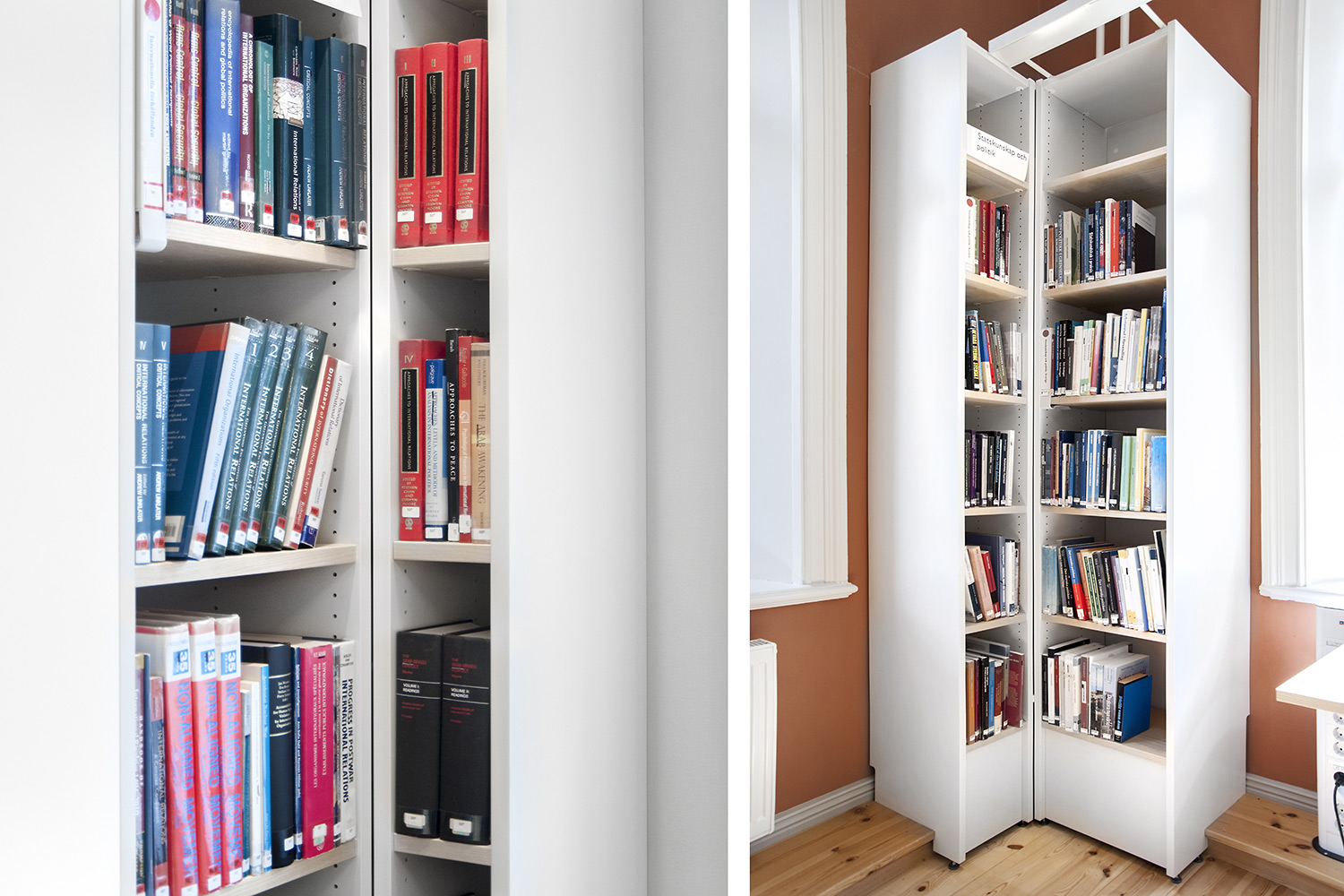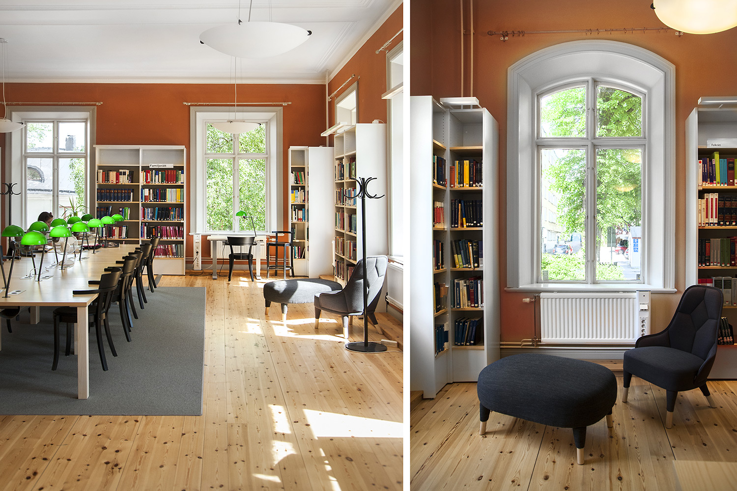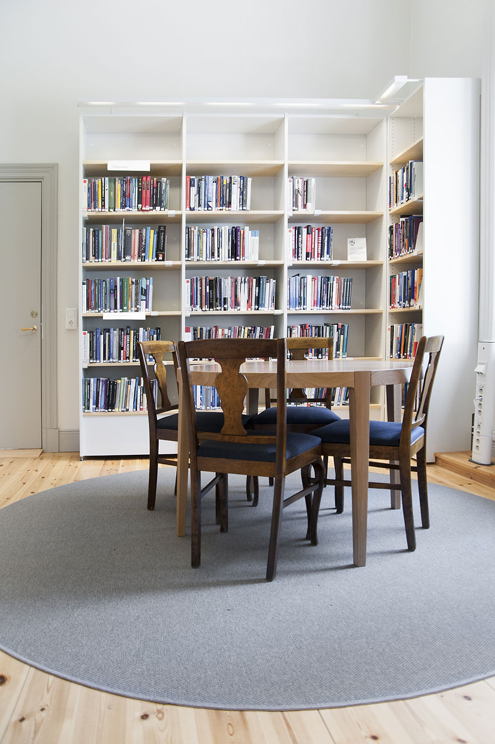 A listed building results in some challenges with the interior of a library where the shelving needs to be adapted for the characteristics of each room with regards to plumbing, sockets and wiring on the floor. The shelving system we have worked with in this project and that now decorates the library and fulfill the needs is Frontline with lacquered panels and shelves in ash.