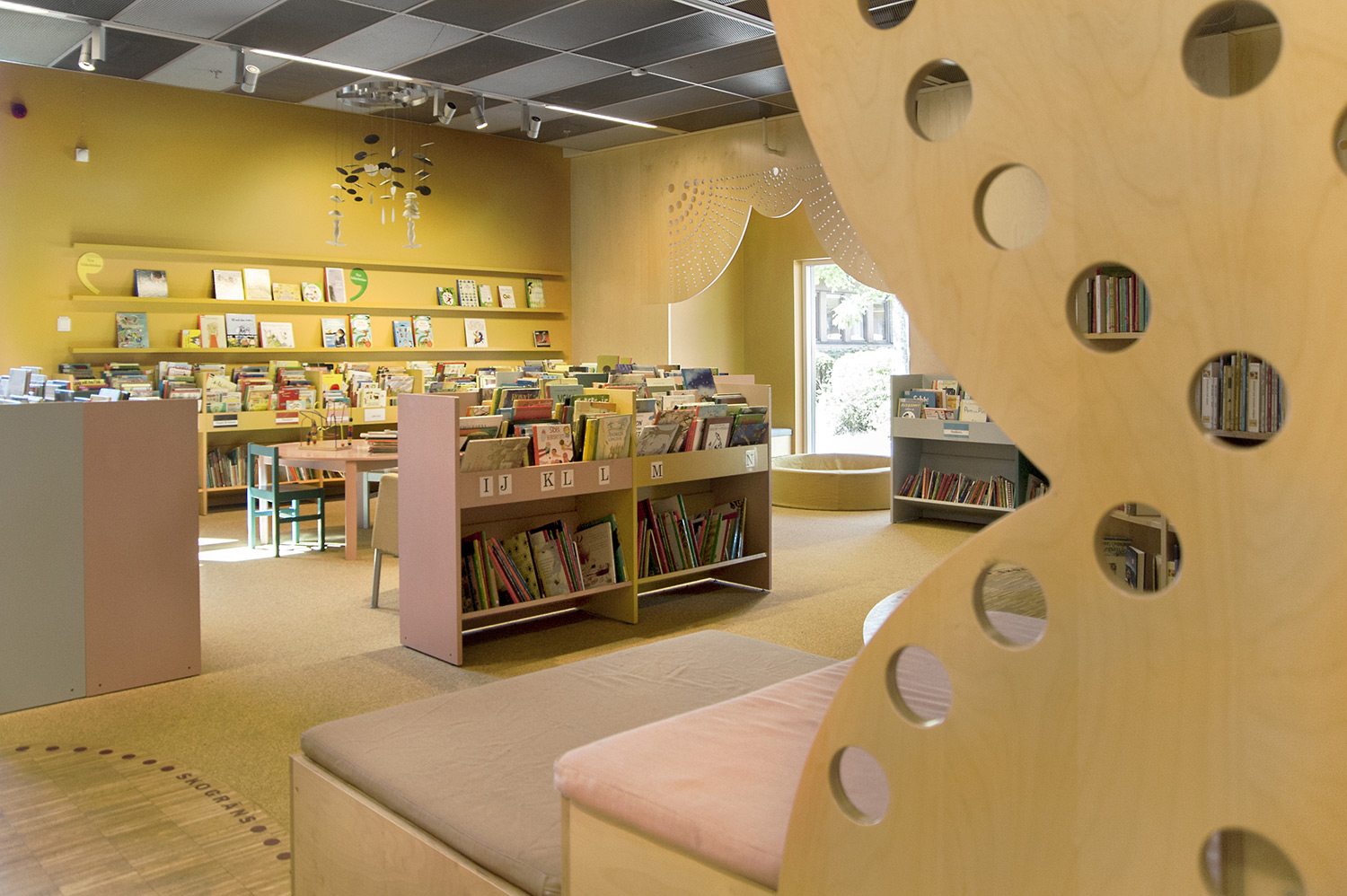 As part of the renovation the library wanted to create an open, inviting space, but at the same time there should be places for children to crawl in for peace and relaxation. The door to the fabulous room is hidden behind a bookcase - as so often in the world of fairytales.