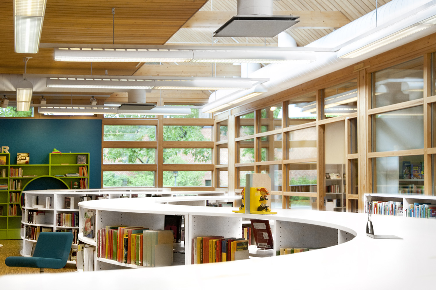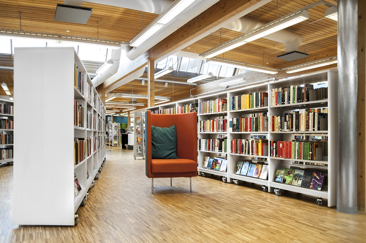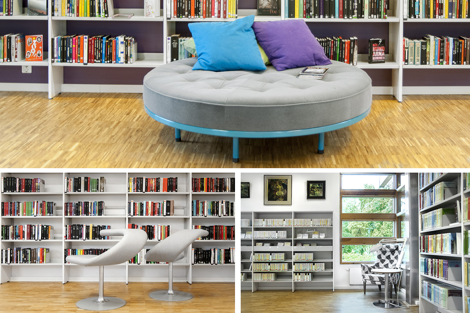 Ystad Public Library is the most visited cultural meeting place in Ystad. The building is designed by architect Claes B Persson and was opened in 1983, but has undergone a major renovation during 2016. The library has focused on making the new children's department attractive to the younger users; including the large shelving system in bright colours with integrated seating, that invites you to sit down and read, along with other seating and cozy areas, where children and young people can relax.