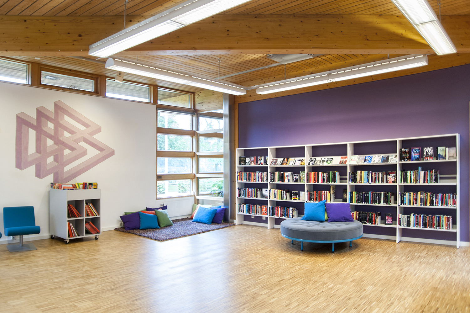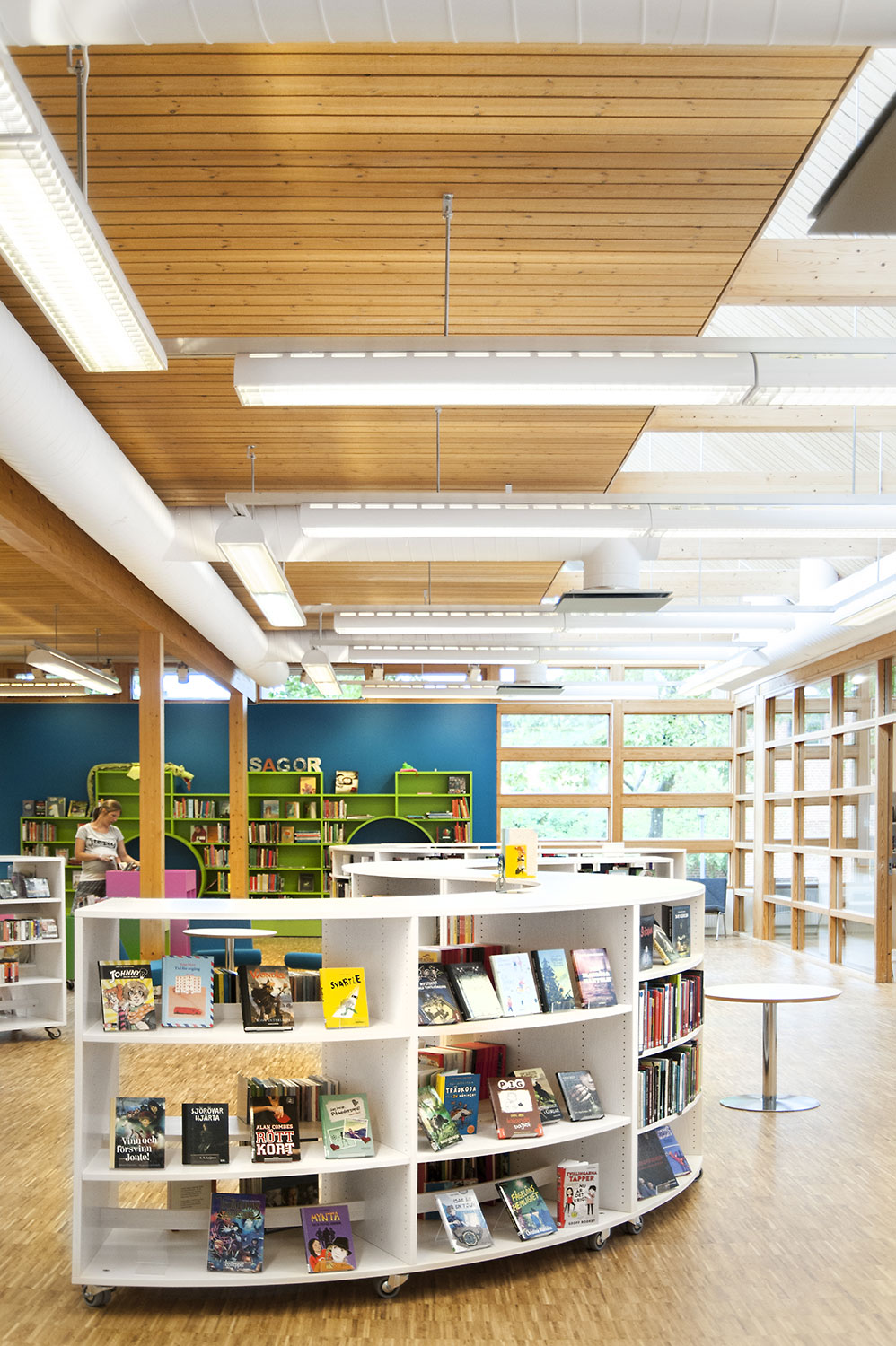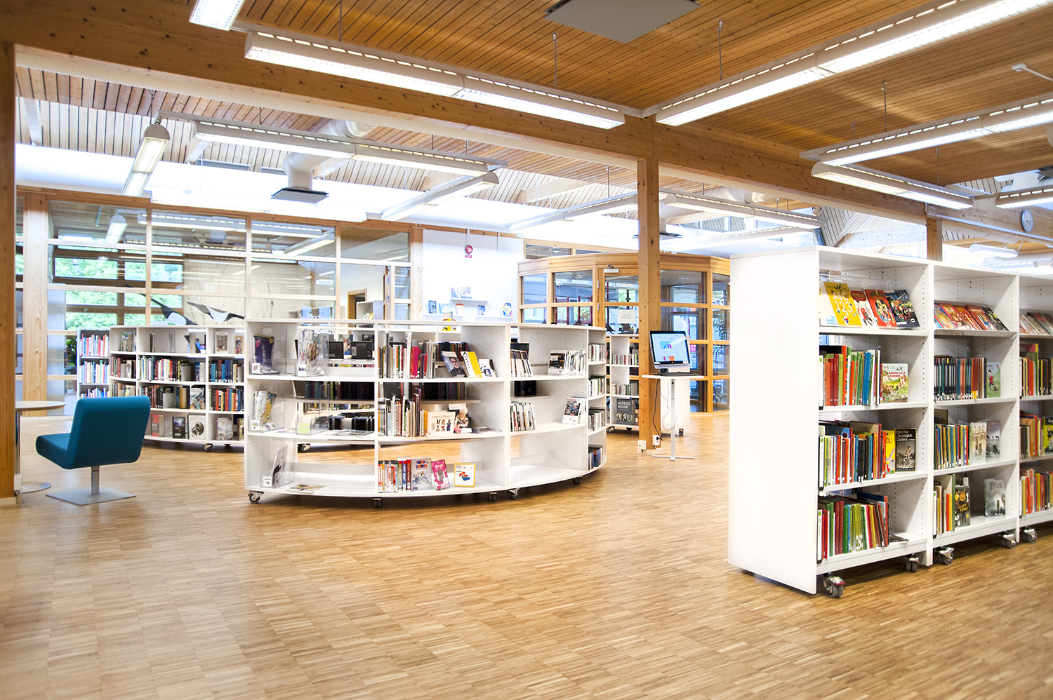 Ystad Public Library is the most visited cultural meeting place in Ystad. The building is designed by architect Claes B Persson and was opened in 1983, but has undergone a major renovation during 2016. The library has focused on making the new children's department attractive to the younger users; including the large shelving system in bright colours with integrated seating, that invites you to sit down and read, along with other seating and cozy areas, where children and young people can relax.