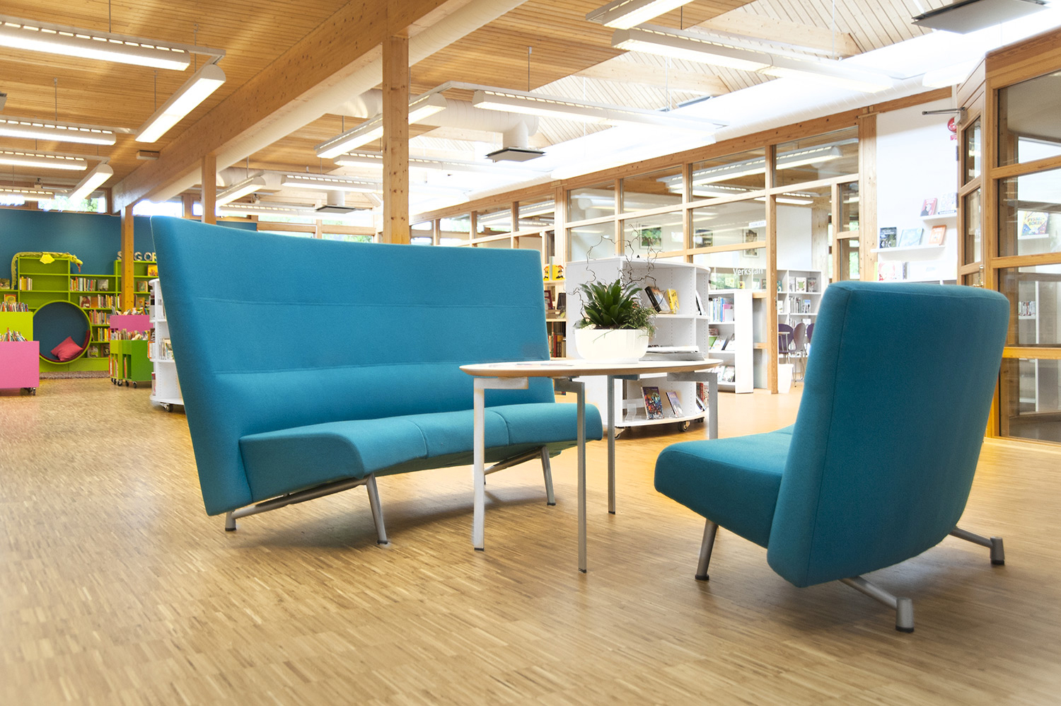 It has been important to focus on the environment during the whole process of the renovation; from reusing and upholstering old chairs to be used in the café to an environmentallly certified, wooden floor, that has been laid throughout the entire library.