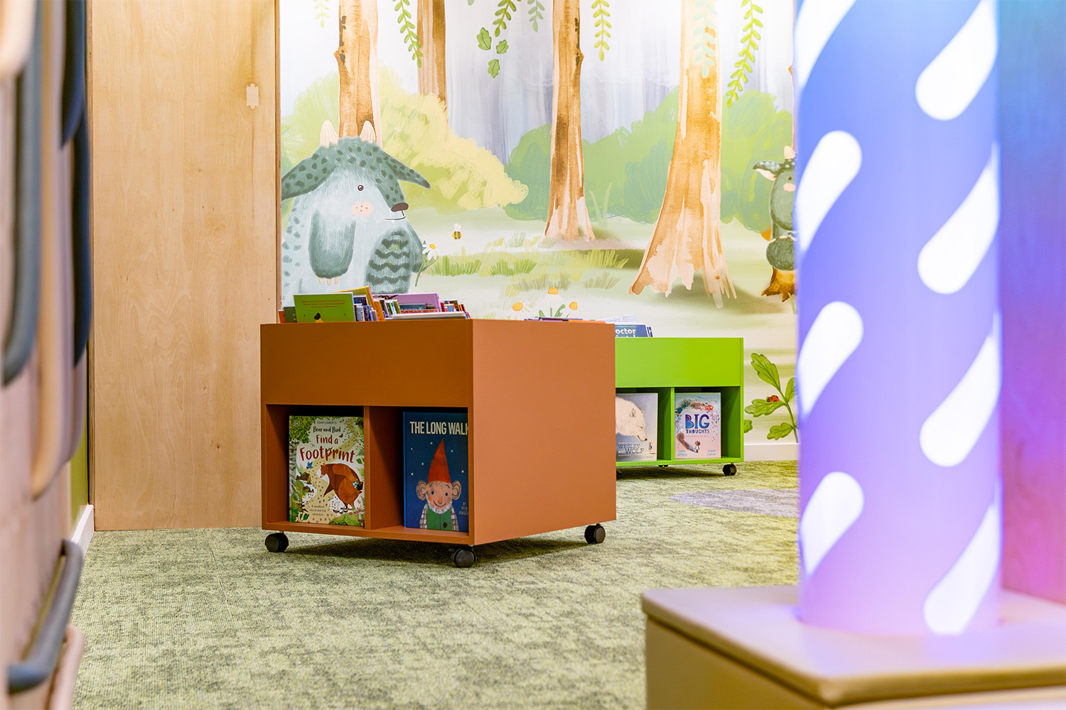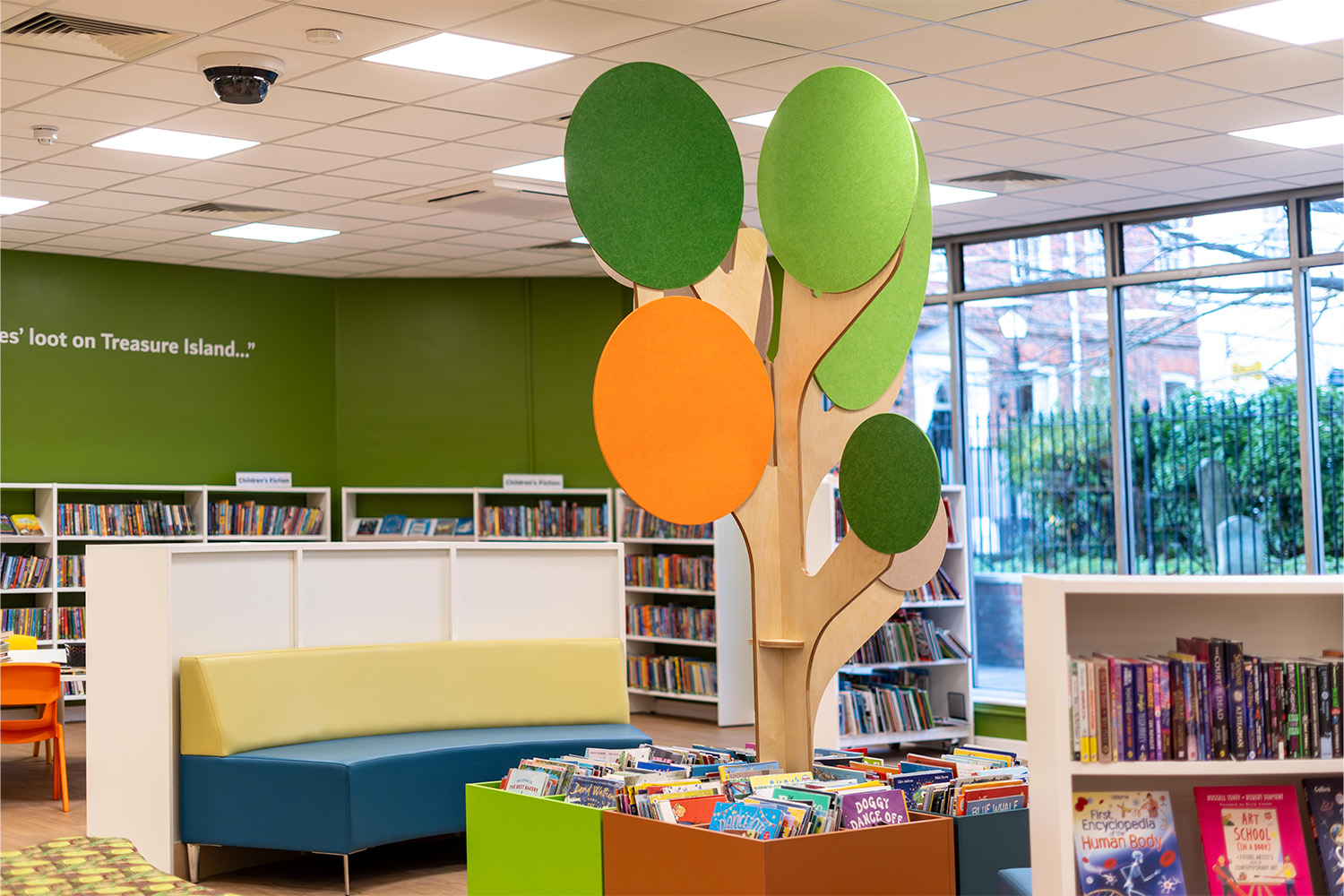 Three key areas formed the focus of the refurbishment: the ground floor, the imagination space, and the literacy centre. Throughout these zones, essential design elements such as colour detailing, wayfinding signage, graphics, and biophilic features were introduced to create a warm, welcoming atmosphere.
