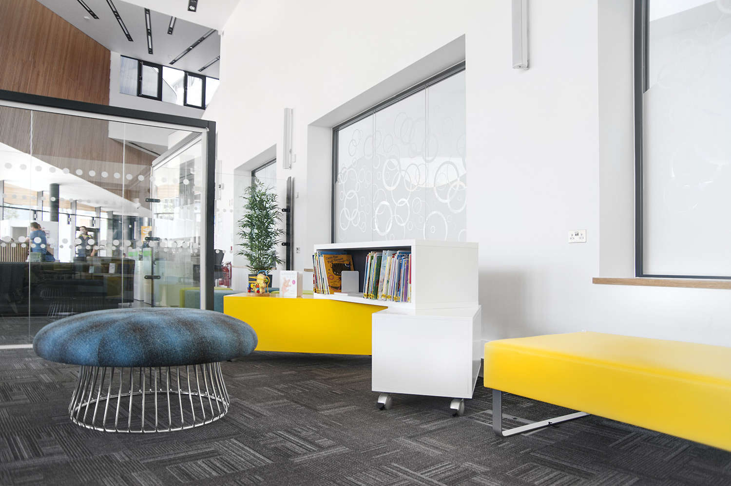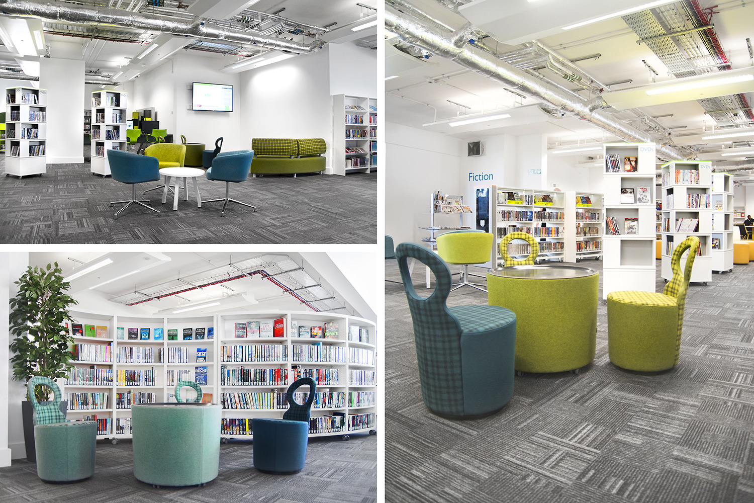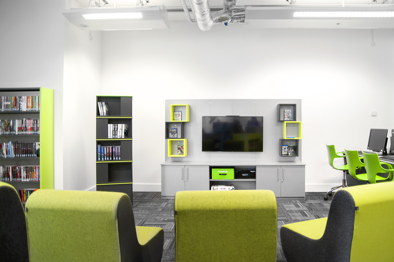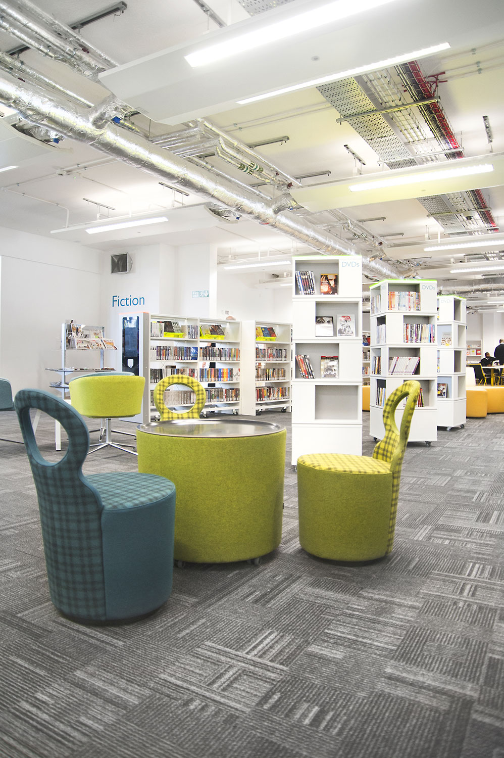 Thedesignconcept introduced stimulating and inspirational furniture, gadget bars and digital technology to this exciting library space.