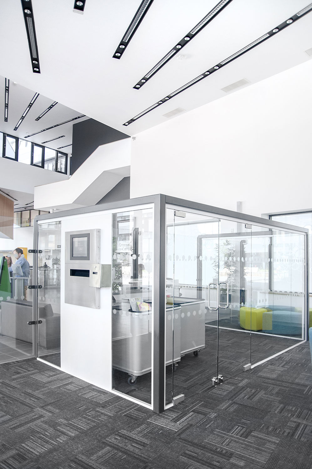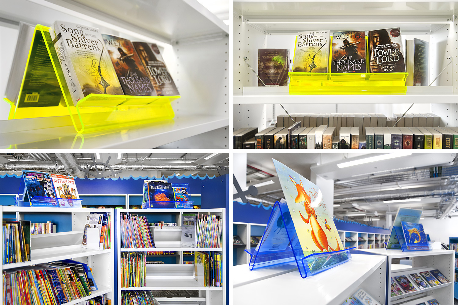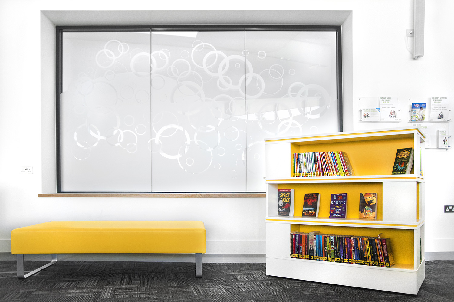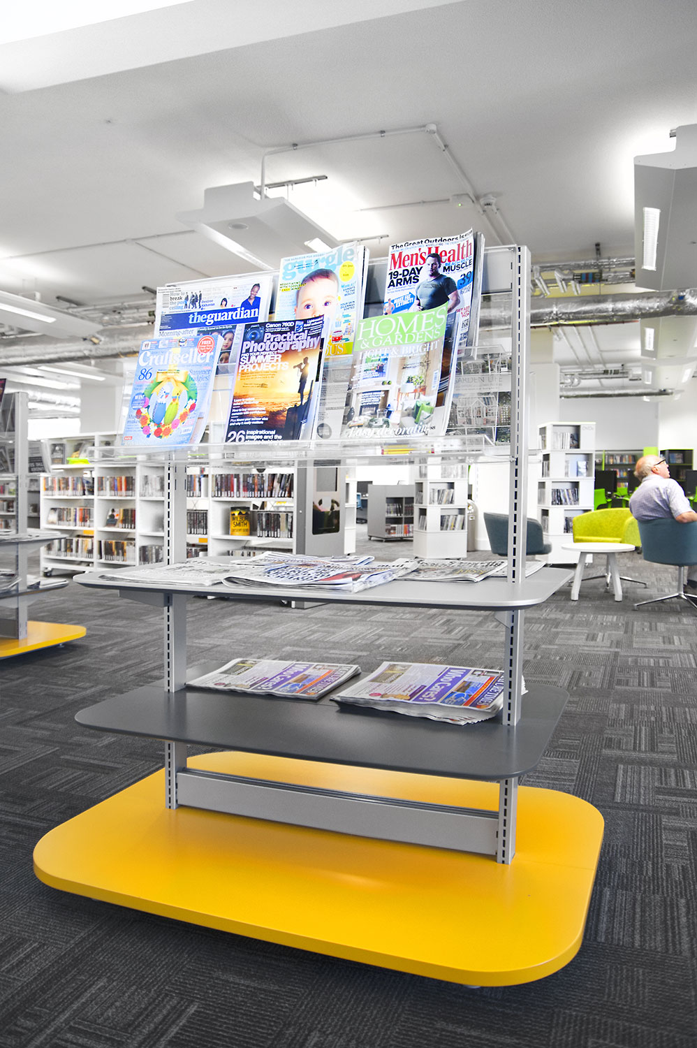Throughout the library, digital end panels allow customers to browse for specific books and authors as well as giving access to the library’s app which highlights new books and facilities that are available for each customer.
