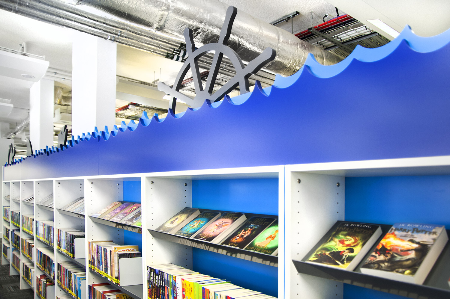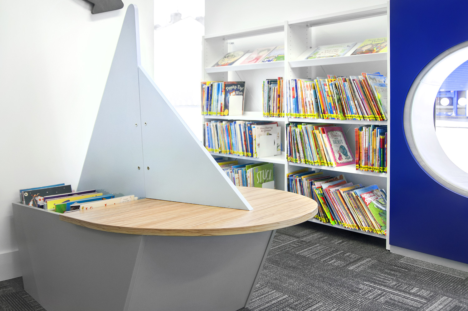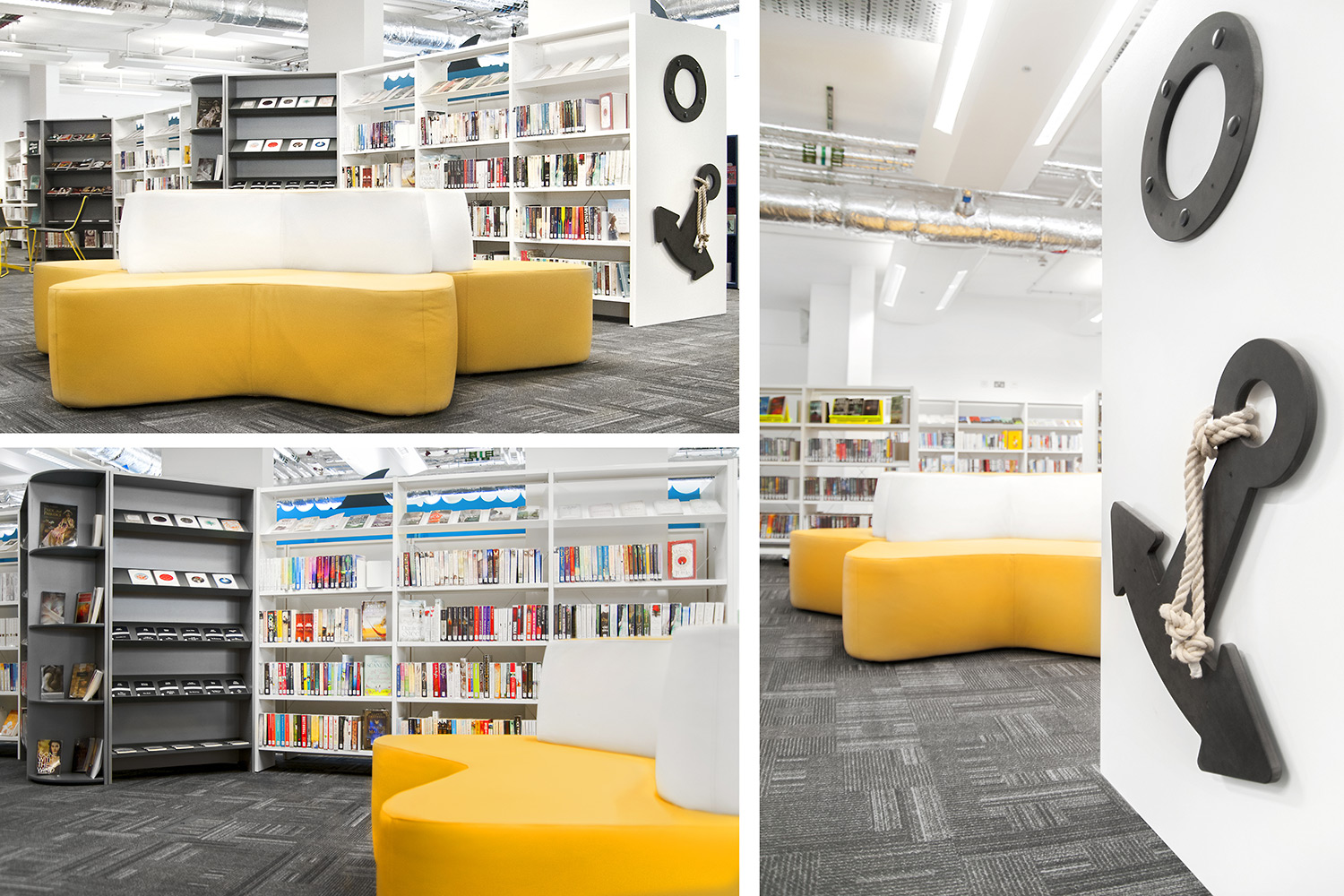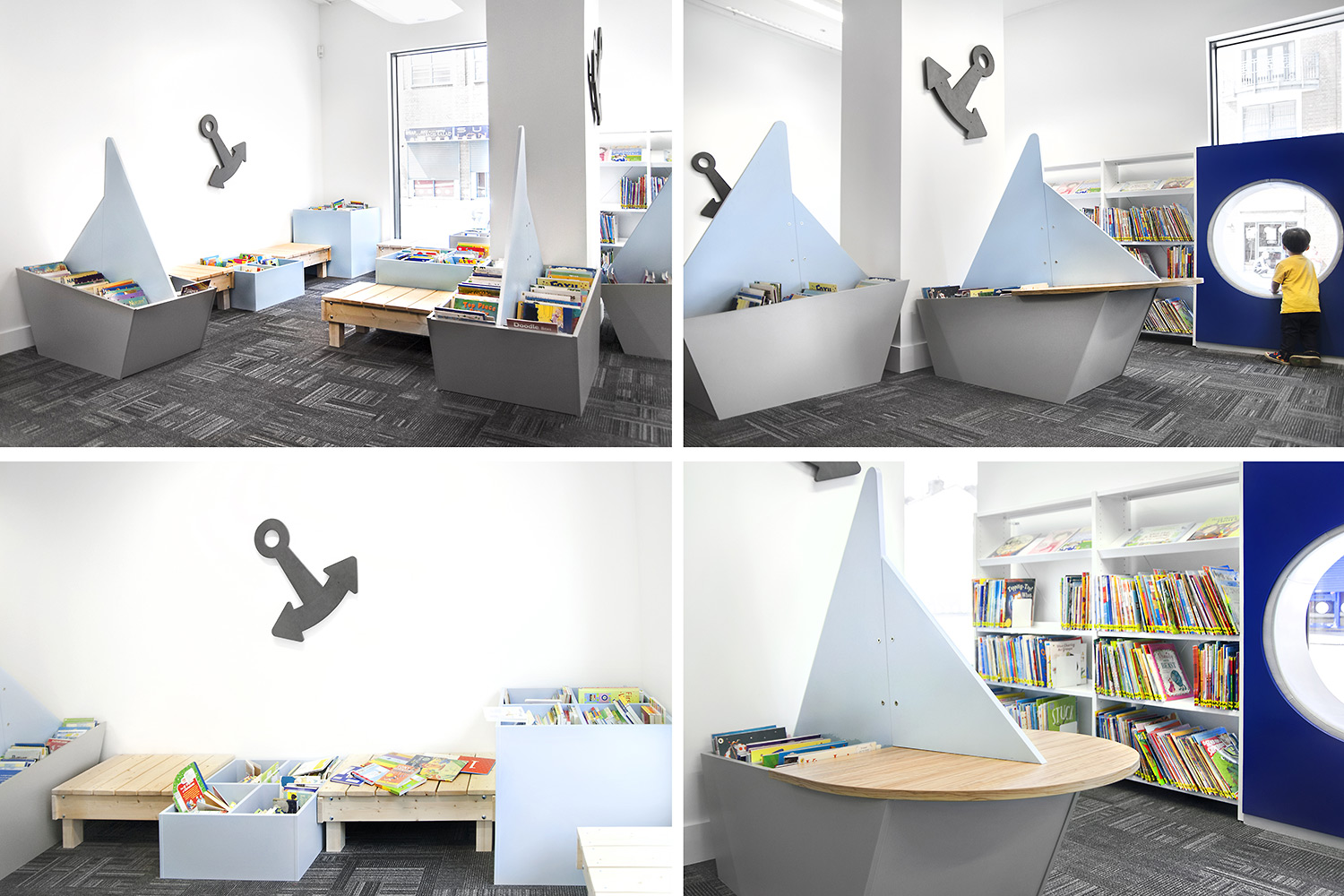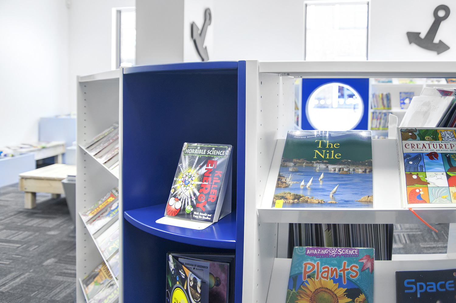 Following a maritime theme, to incorporate the rich history of Greenwich, the children’s area of the library has been fitted with boat shaped browsers and the shelving includes waves, anchors and port-holes for children to enjoy. The children’s library also has PC’s and tablets available for the younger visitors.