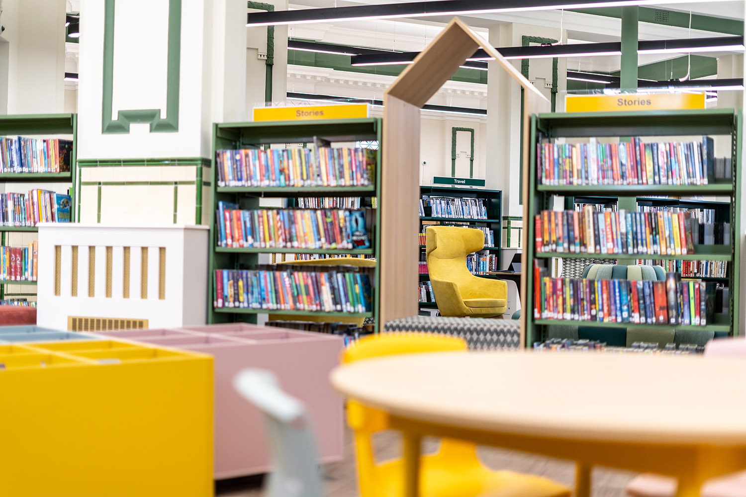 Chorlton Library exemplifies inclusive design, offering clear wayfinding and access to all, championing equal opportunity for knowledge and community engagement.