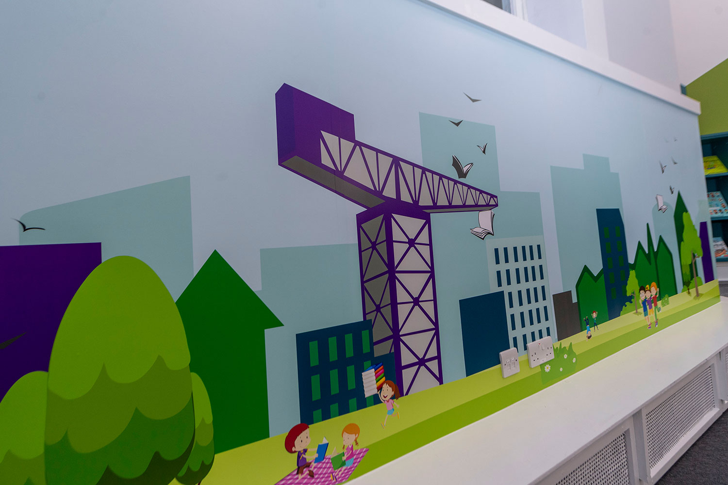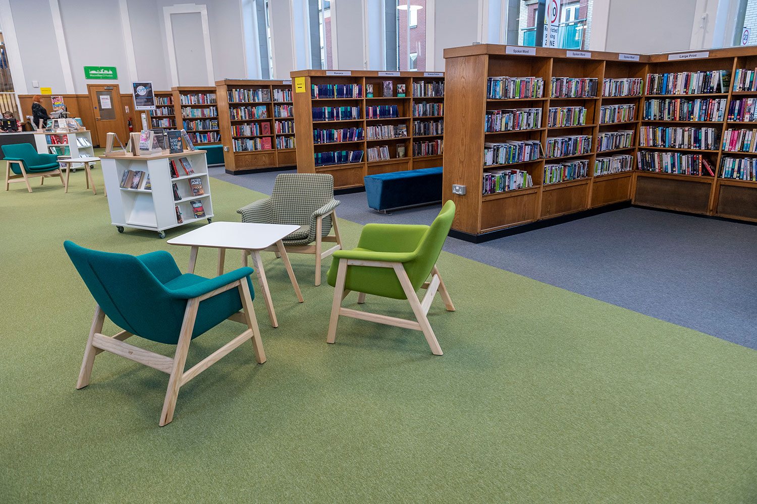 BCI 60/30 freestanding mobile shelving is used for easy flexibility in the Children’s area and bespoke wall mounted shelving meets requirements set out for the space by Glasgow Life.