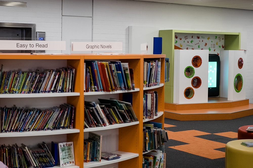 Now a community hub, the space has been used to its full potential and is a success with students eager to study, local artists who can showcase their own pieces as well as view fellow artists’ work and children spending their day playing/reading while parents relax and keep a watchful eye. The library space itself is now modern and vibrant through the use of colourful graphics and contemporary furniture.