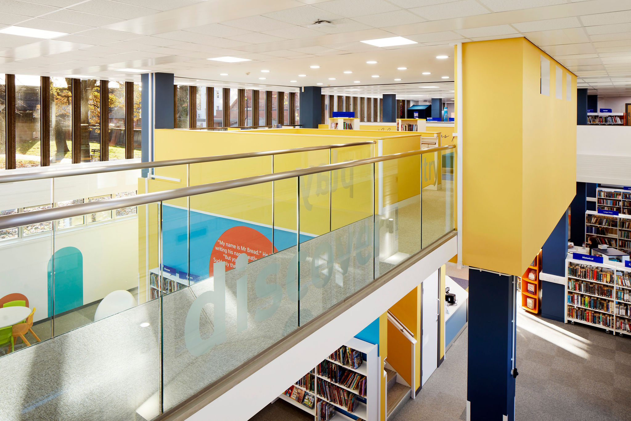 Our brief for the refurbishment of Tamworth Library was to create a bright, light and airy space with a welcoming entrance and a flexible open plan space that allows for a very modern and multifunctional layout. The purpose of the design was to support an innovative, ambitious place, where everyone has the opportunity to prosper, be healthy and happy.