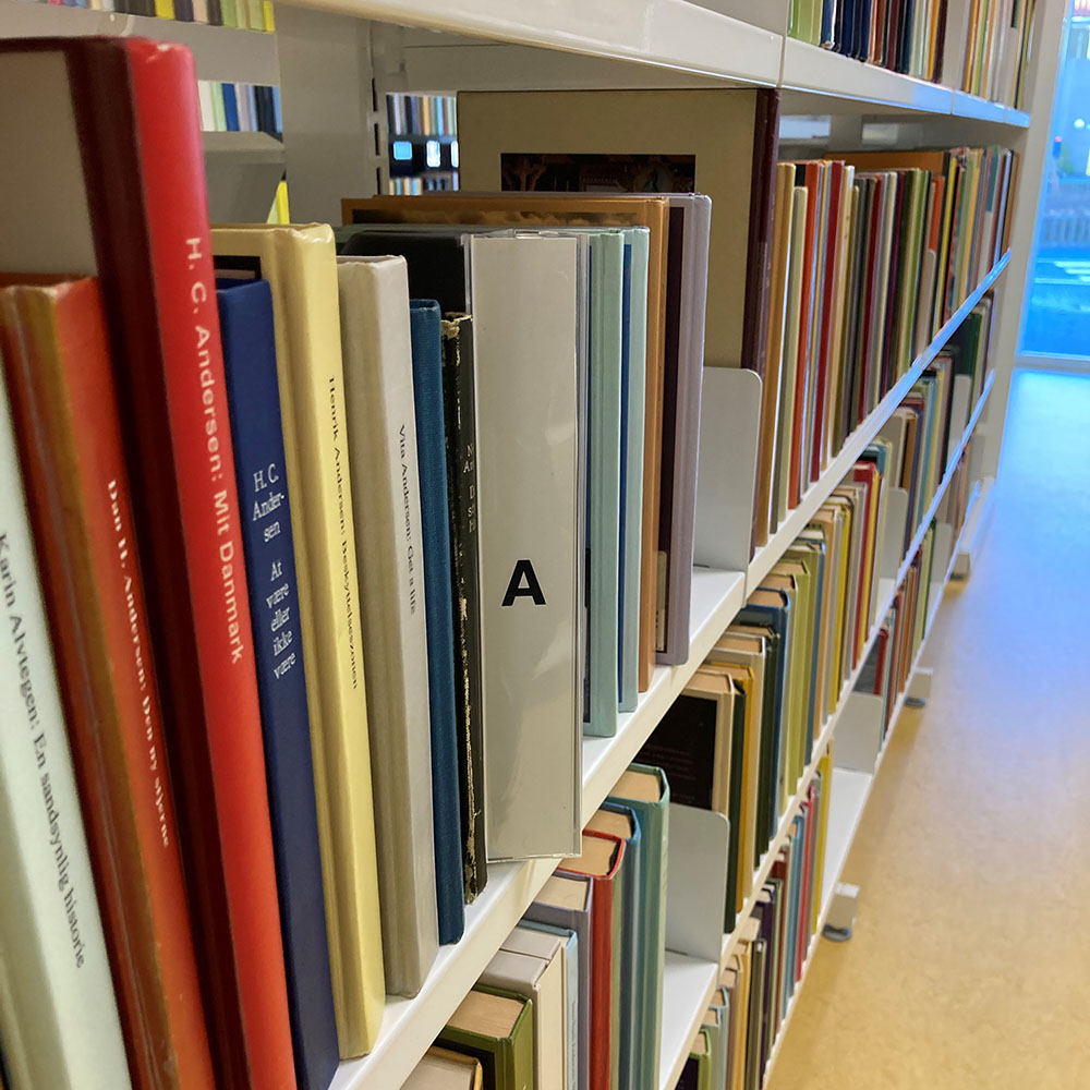 Foldable label holder protruding from the shelf.