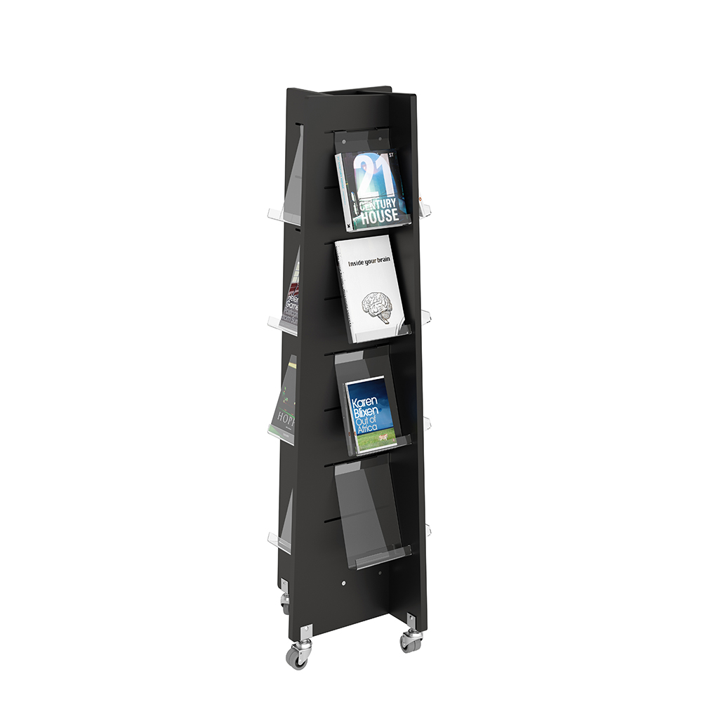 Four sided display tower for front-facing display of books, periodicals etc.
