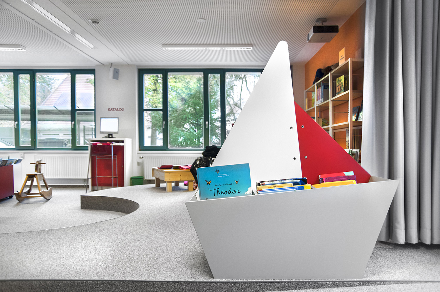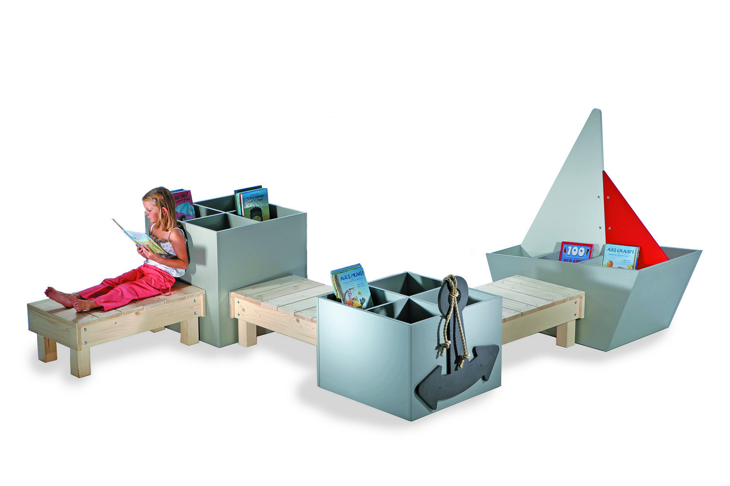 These magnificent picture book boxes are shaped like sailing boats. The hull with 6 compartments can be used to organise books by age, with the flat rear best suited for the very young ones and the bow for the older ones.
