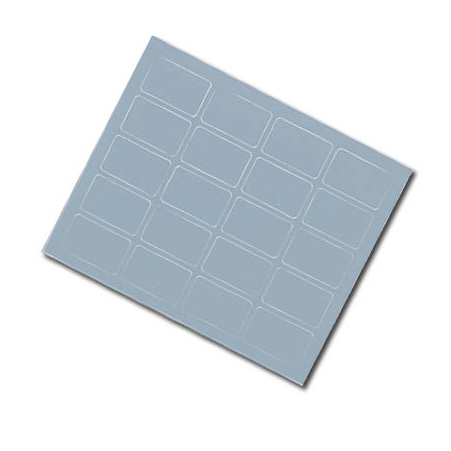 Self-adhesive punched colour markers on sheets.