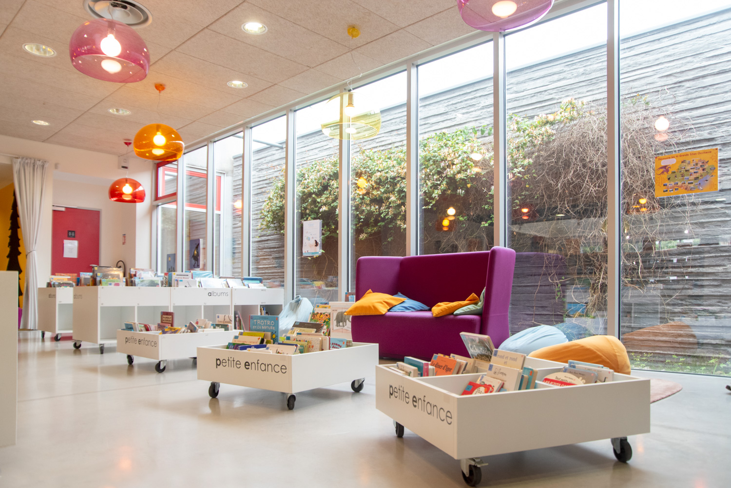 Sara Midi is a picture book browser with four display compartments at the top and four storage compartments underneath. Ideal for children.