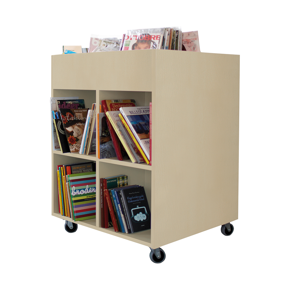 Sara Maxi is a book browser with four display compartments at the top and eight storage compartments underneath. Ideal for both children and adults.