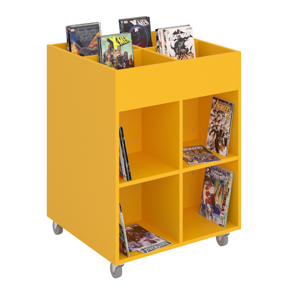 Sara Midi is a picture book browser with four display compartments at the top and four storage compartments underneath. Ideal for children.