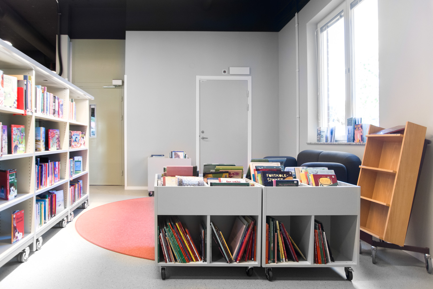 Sara is a functional yet modern browser that presents and stores all types of books and medias in an uncomplicated and visual manner. Depending on the height, the browser can fit both children and adults and be used in all areas of the library.
