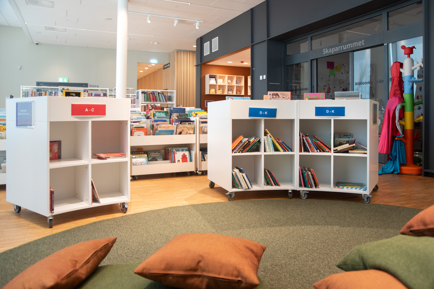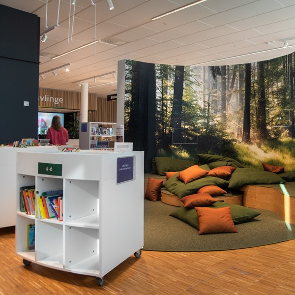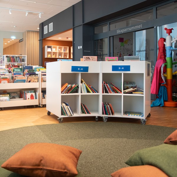 Sara is a functional yet modern browser that presents and stores all types of books and medias in an uncomplicated and visual manner. Depending on the height, the browser can fit both children and adults and be used in all areas of the library.