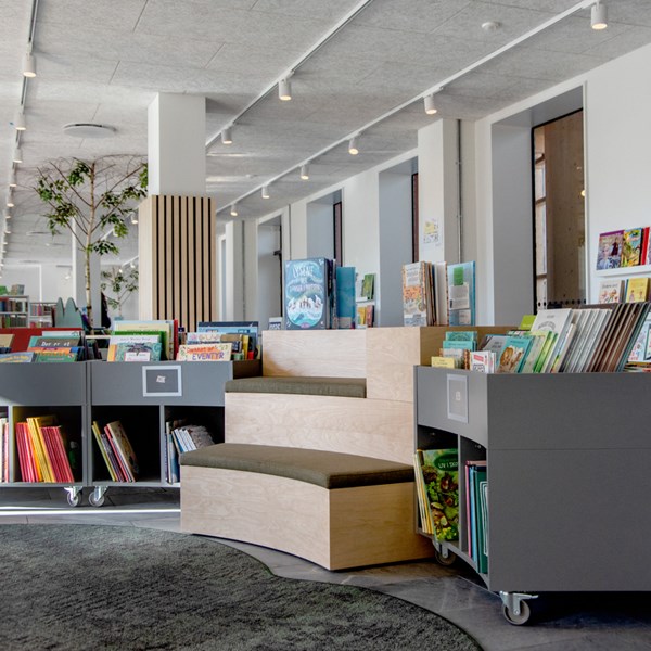 Sara is a functional yet modern browser that presents and stores all types of books and medias in an uncomplicated and visual manner. Depending on the height, the browser can fit both children and adults and be used in all areas of the library.