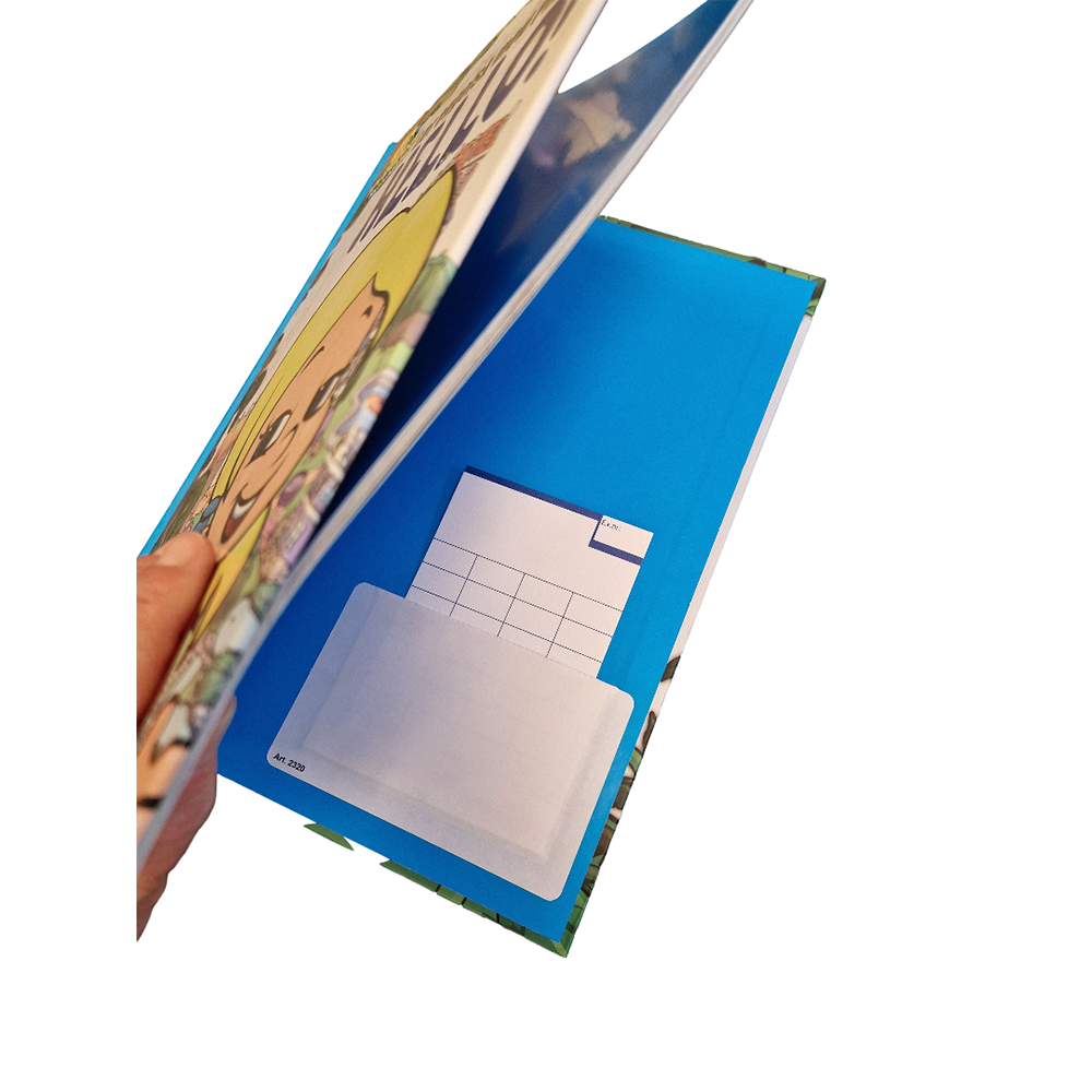 Self-adhesive book pockets (credit card size) for library cards, insert, etc.