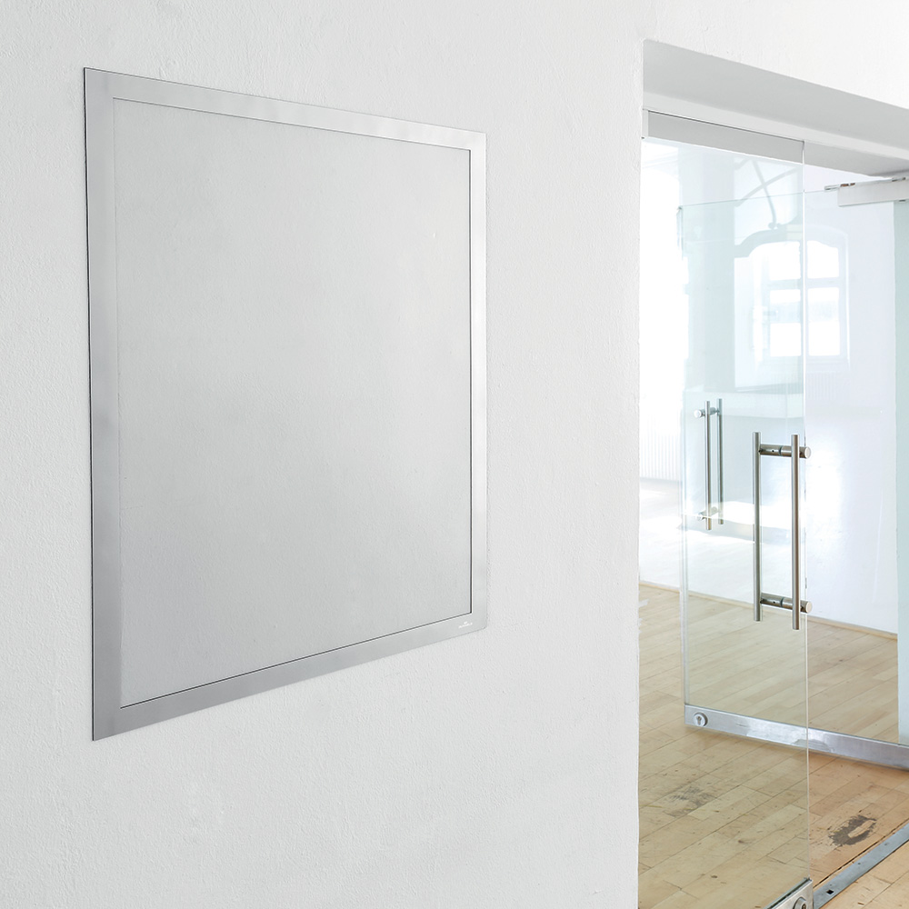 The self-adhesive magnetic frames (Duraframe®) attach easily on any smooth surface such as doors, windows, walls, end panels etc.