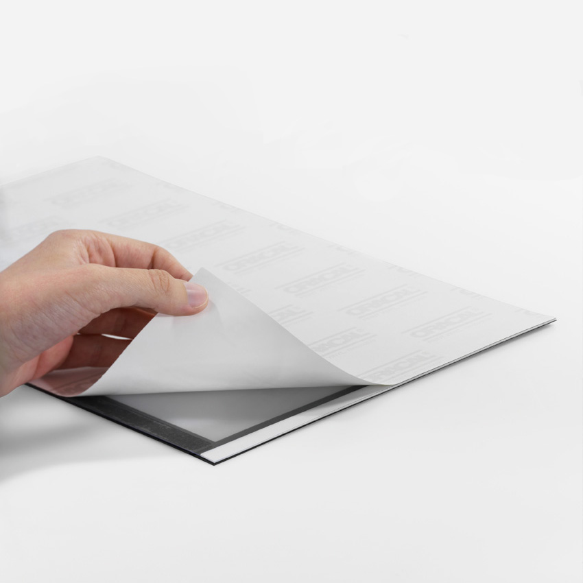 The self-adhesive magnetic frames (Duraframe®) attach easily on any smooth surface such as doors, windows, walls, end panels etc.