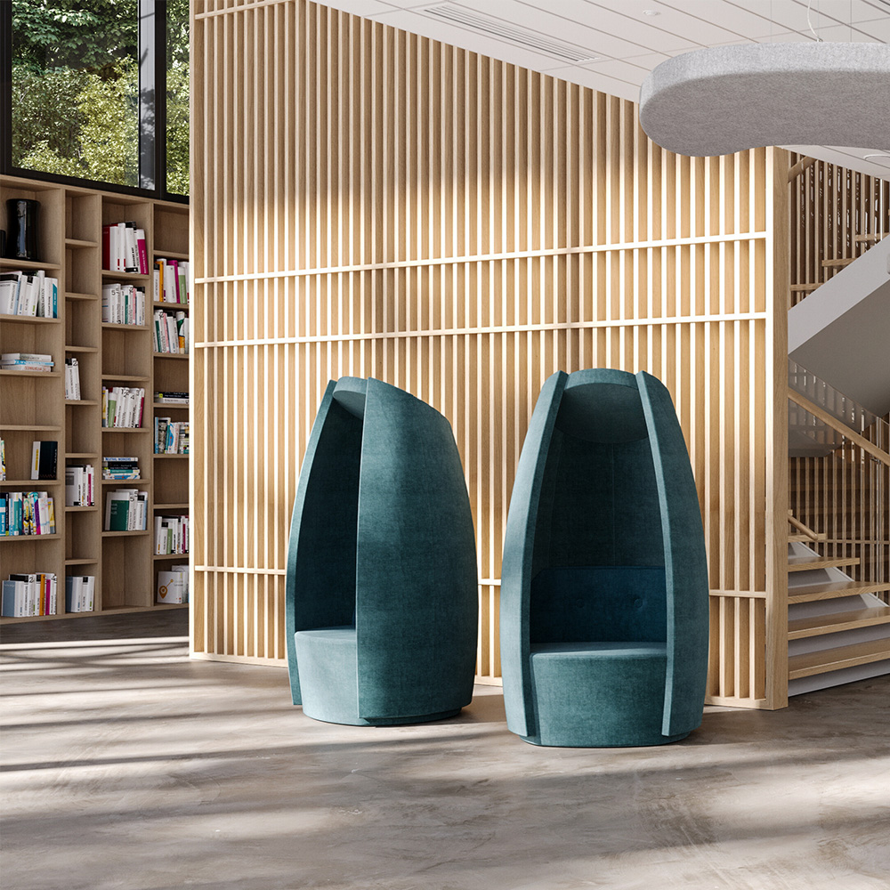 Immerse yourself in the result of sophisticated nordic design in perfect combination with practical usage in this soft and very comfortable chair. Inspired by nature, this chair encapsulates you in a cocoon of tranquility, perfectly suited for public libraries, learning environments, schools and universities.