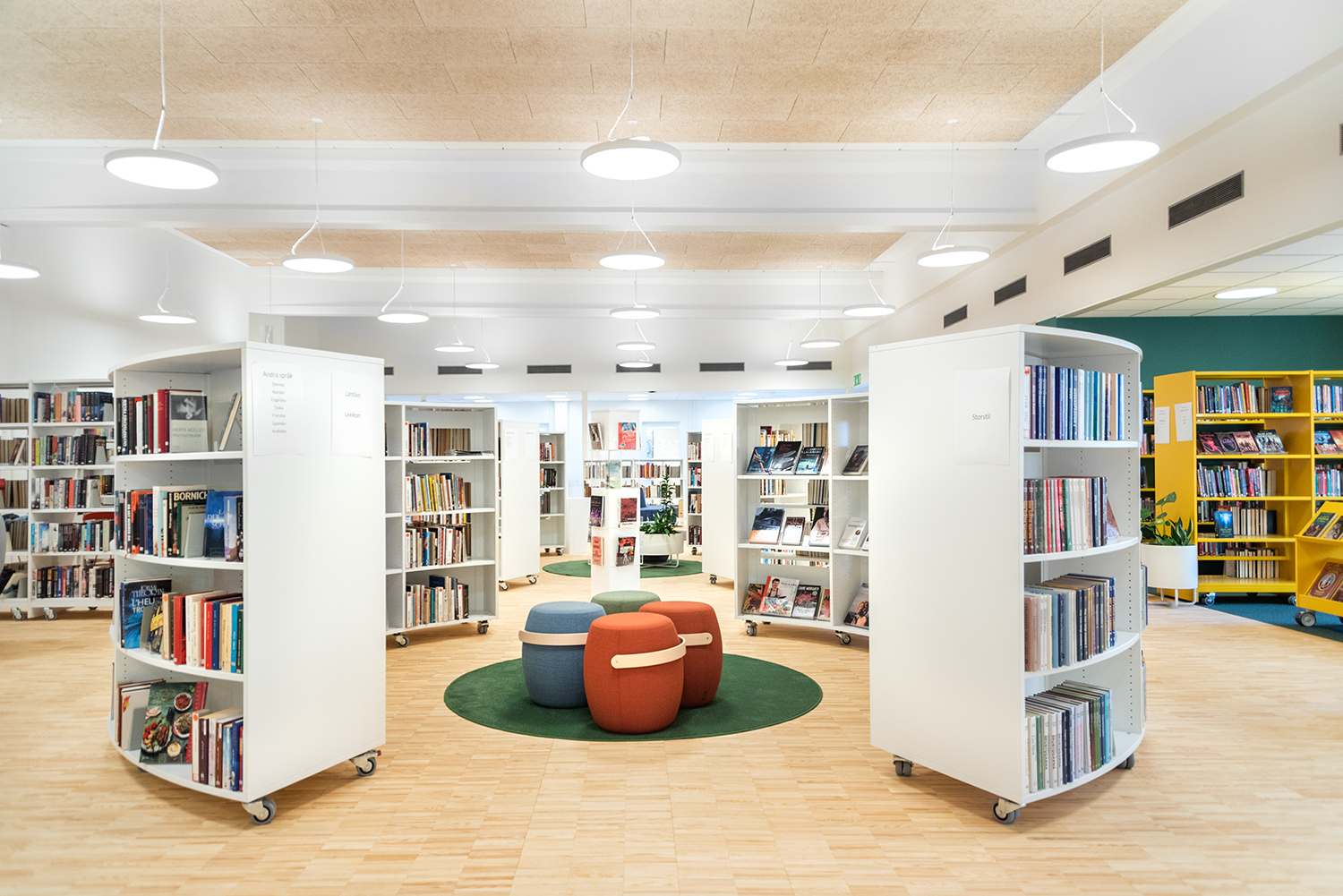The Slimline/Frontline round shelving opens up for a whole new world of displaying and storing books. Create small reading or specialized zones by making almost complete circles, where library readers can hide away, or create open waves running through the library.