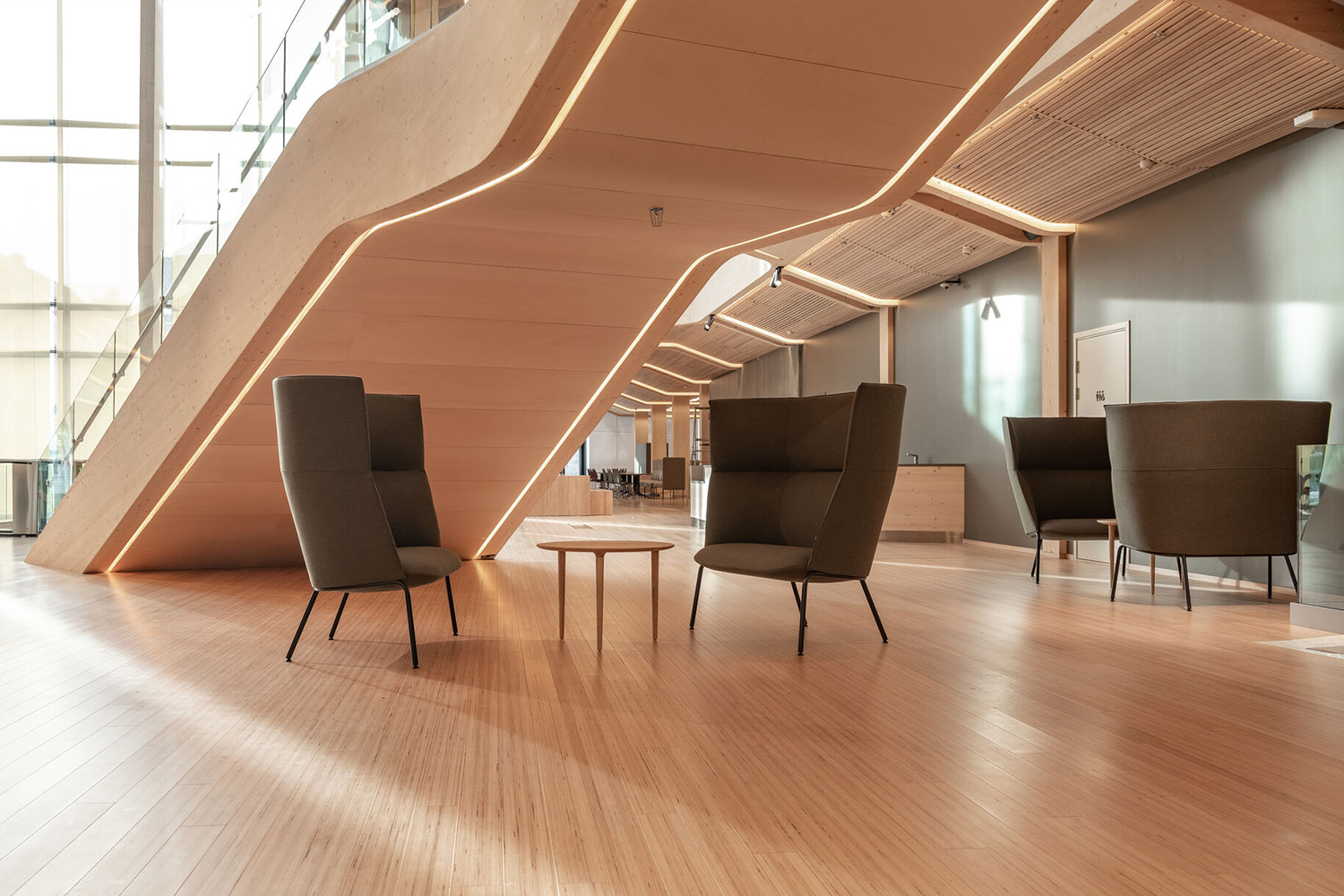 Tind is a series of sofas and chairs with either a high or low backrest. The series is a comfortable and beautiful piece of library furniture with its round organic shapes and recognizable details.