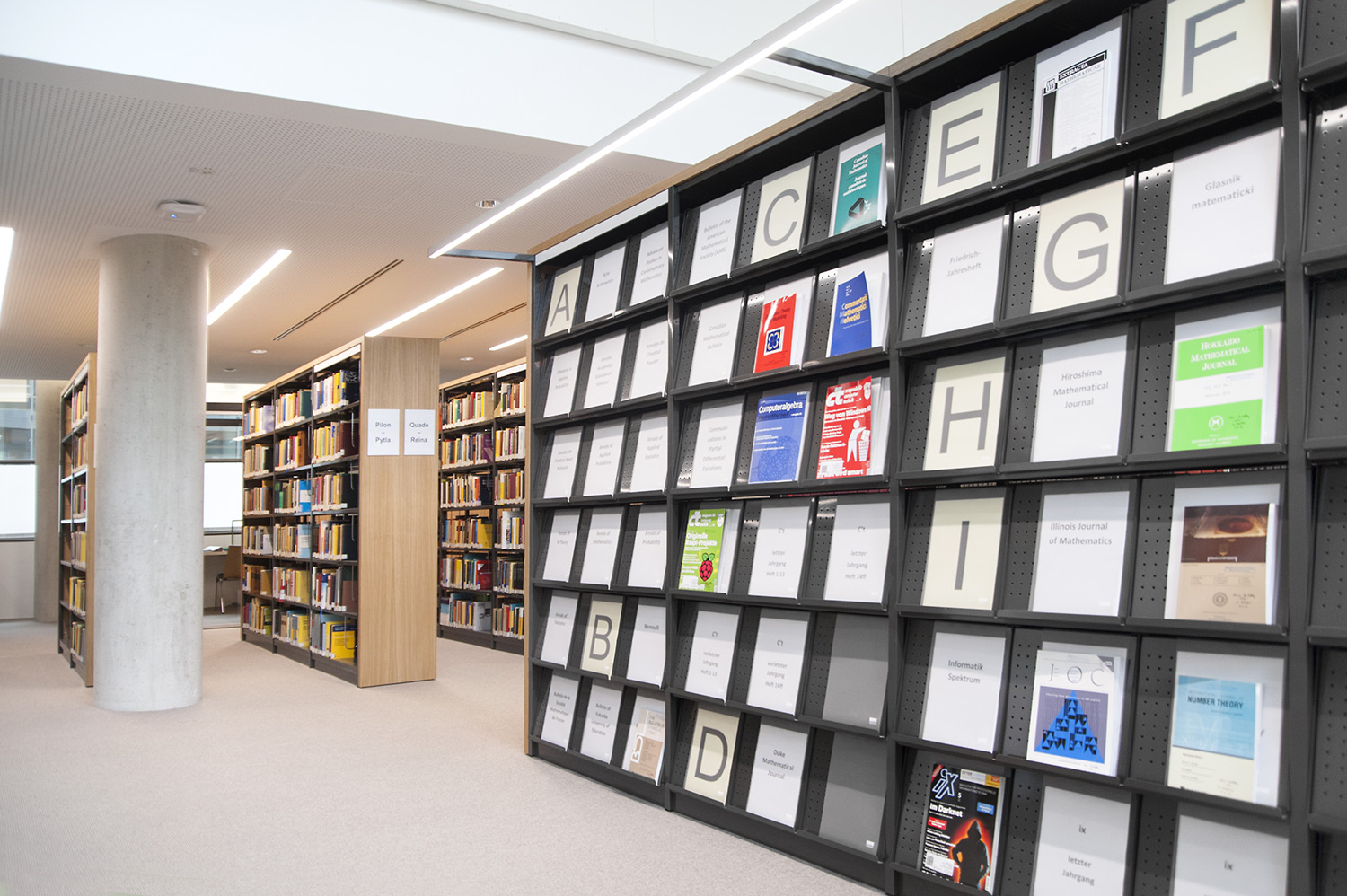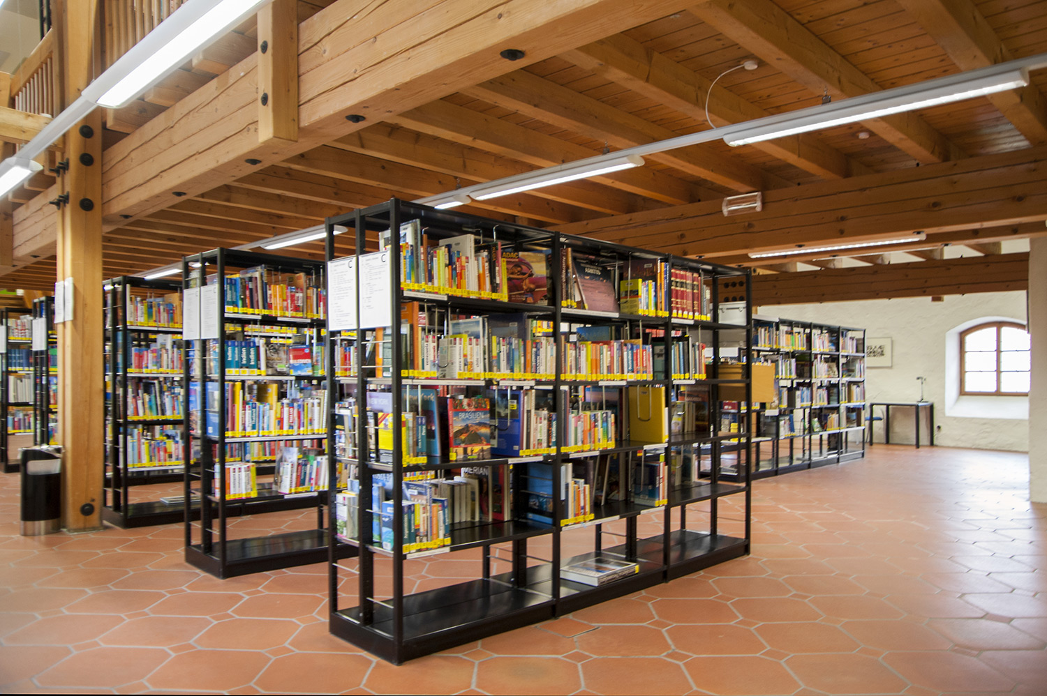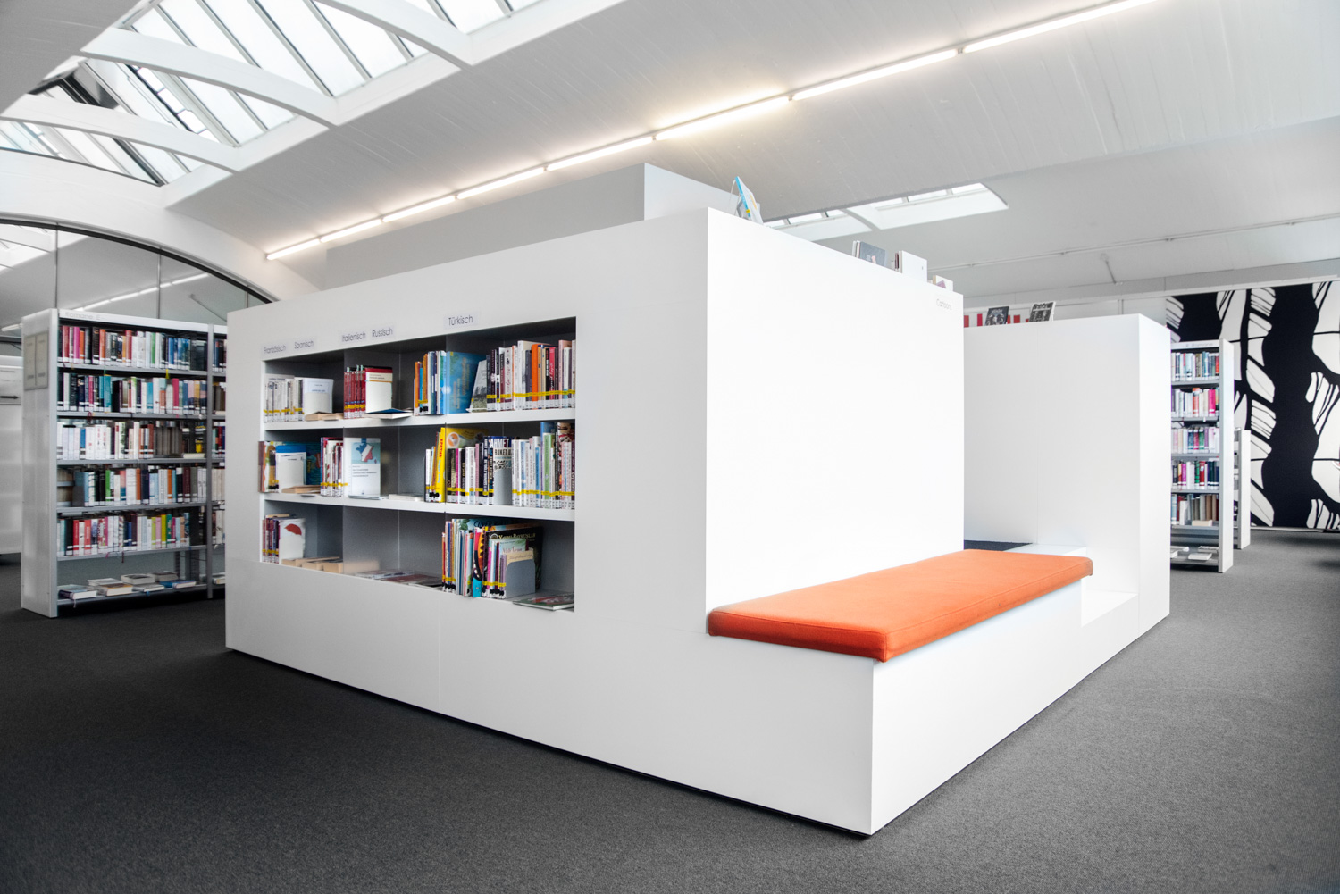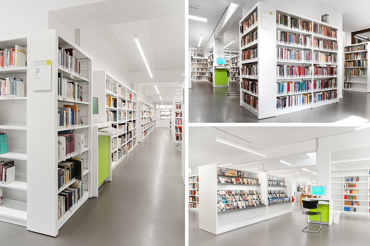The sturdy shelving system with 30 x 30 mm perforated square tubing is ideally suited for use in high volume libraries as well as in public and school libraries. The design of the shelving systems with its 25 mm grid module allows for easy assembly and adjustment without use of specific tools. The bays are pre-fitted with a multifunctional C profile to allow for easy insertion of top and bottom shelf.