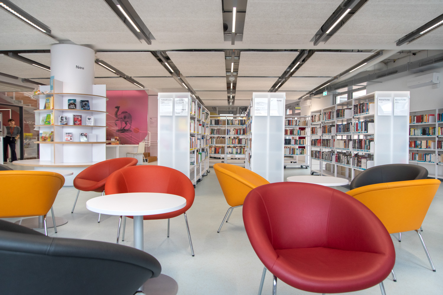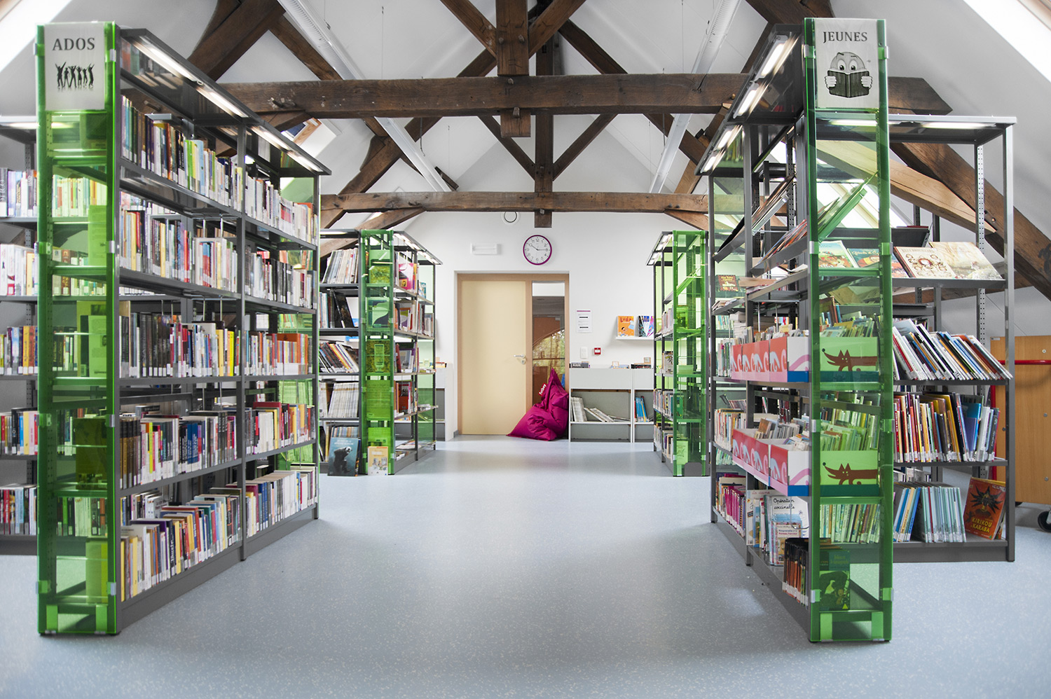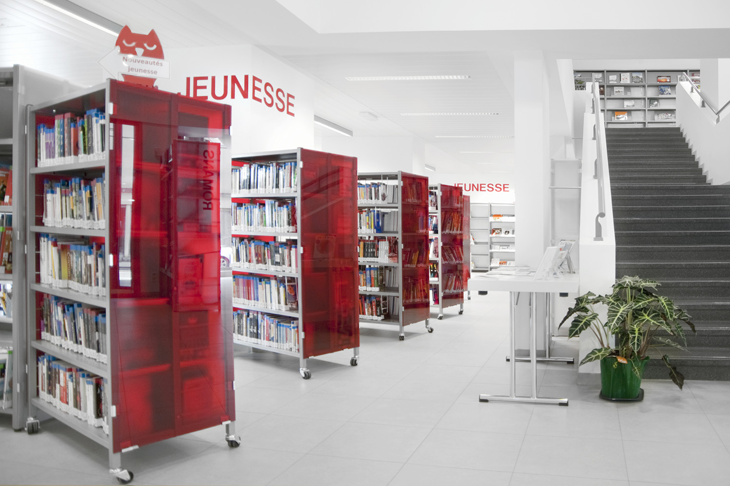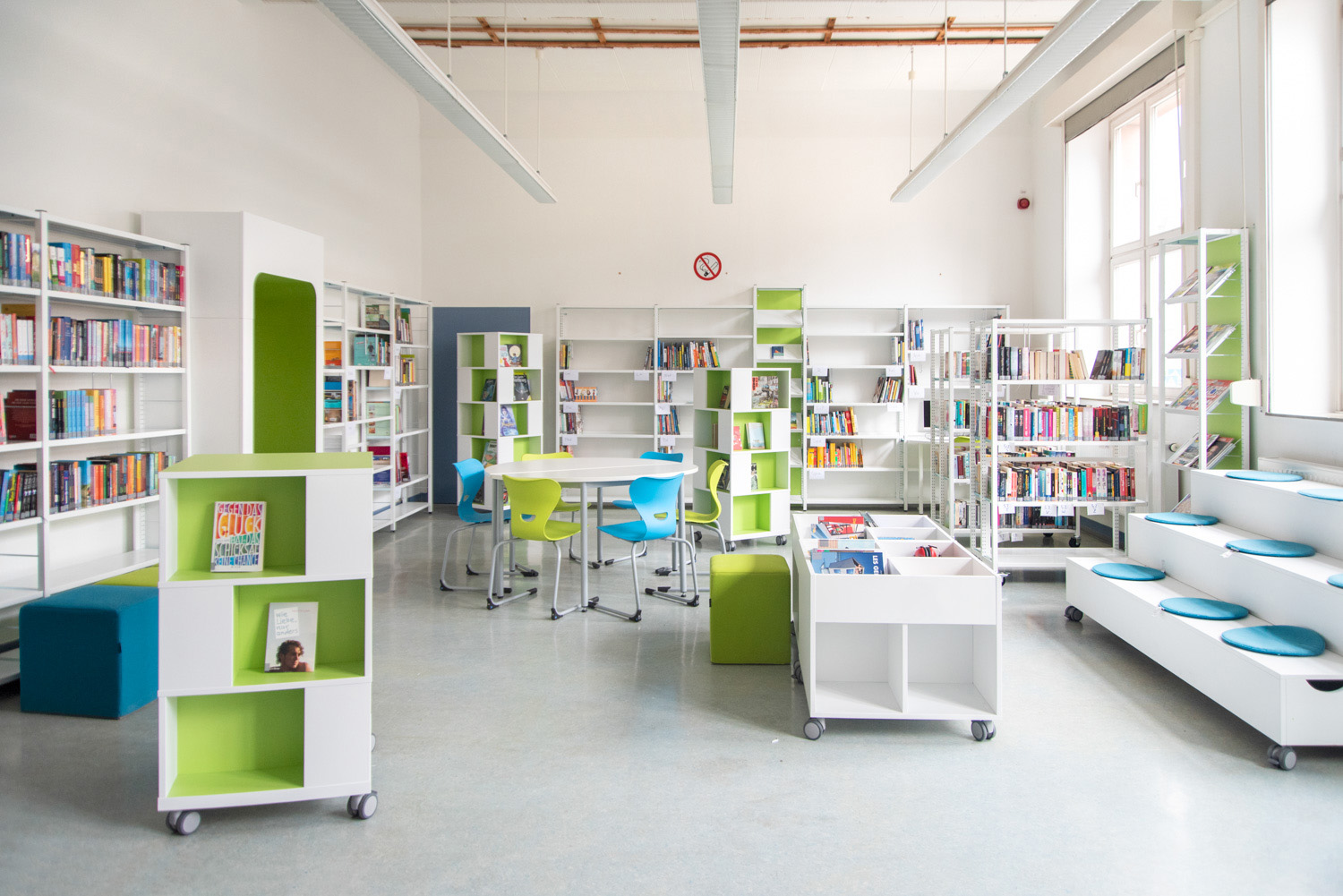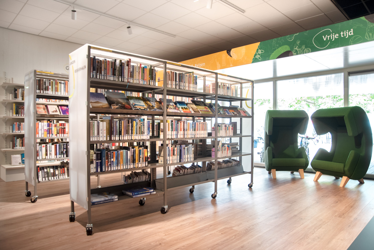 The Uniflex steel shelving is available in two variations – single- and double-sided, both with the option of increasing the height of the bays (from standard 2250 mm up to 3675m m in total). Shelves are available in both steel and wood and several functions can be added to create the right functionality for your library.