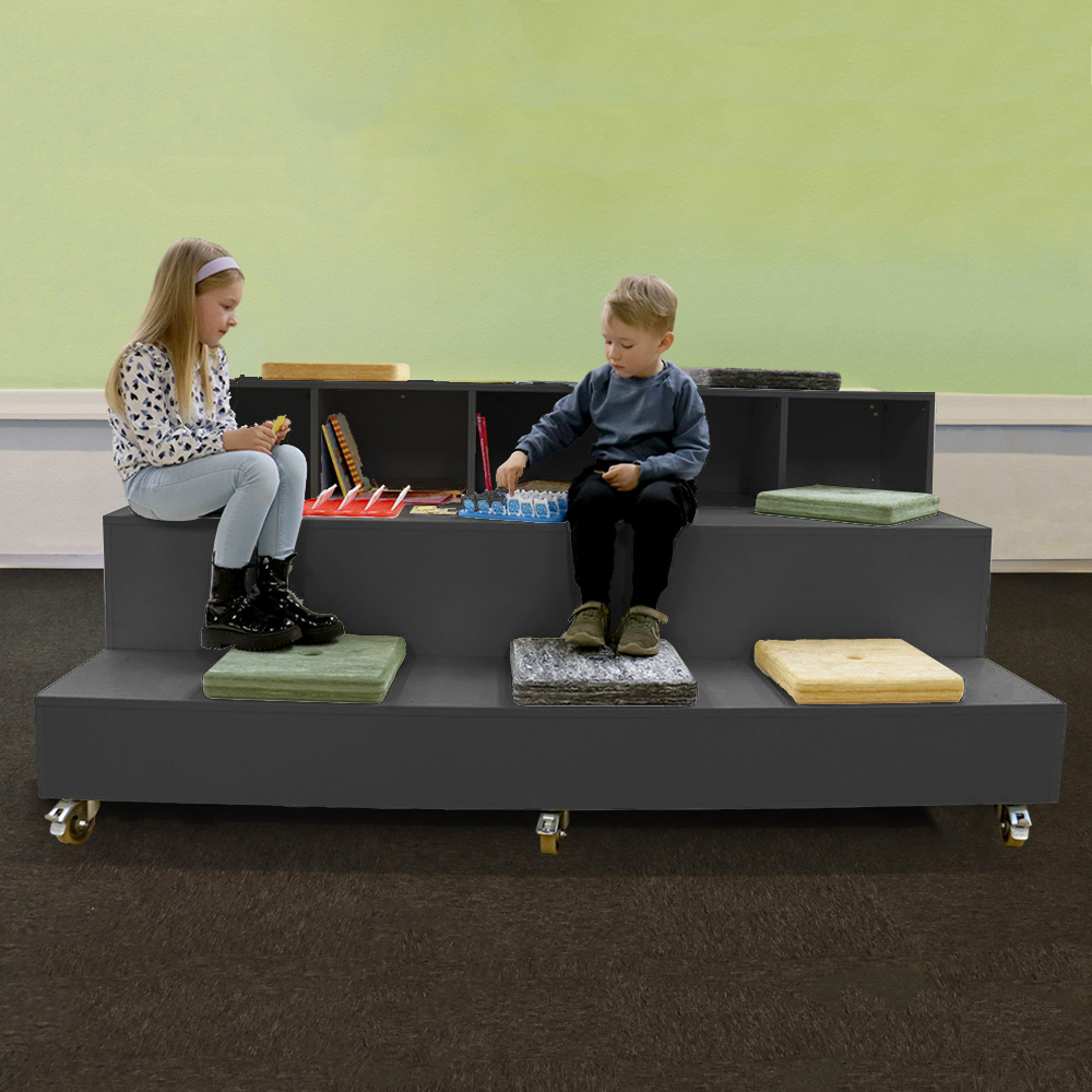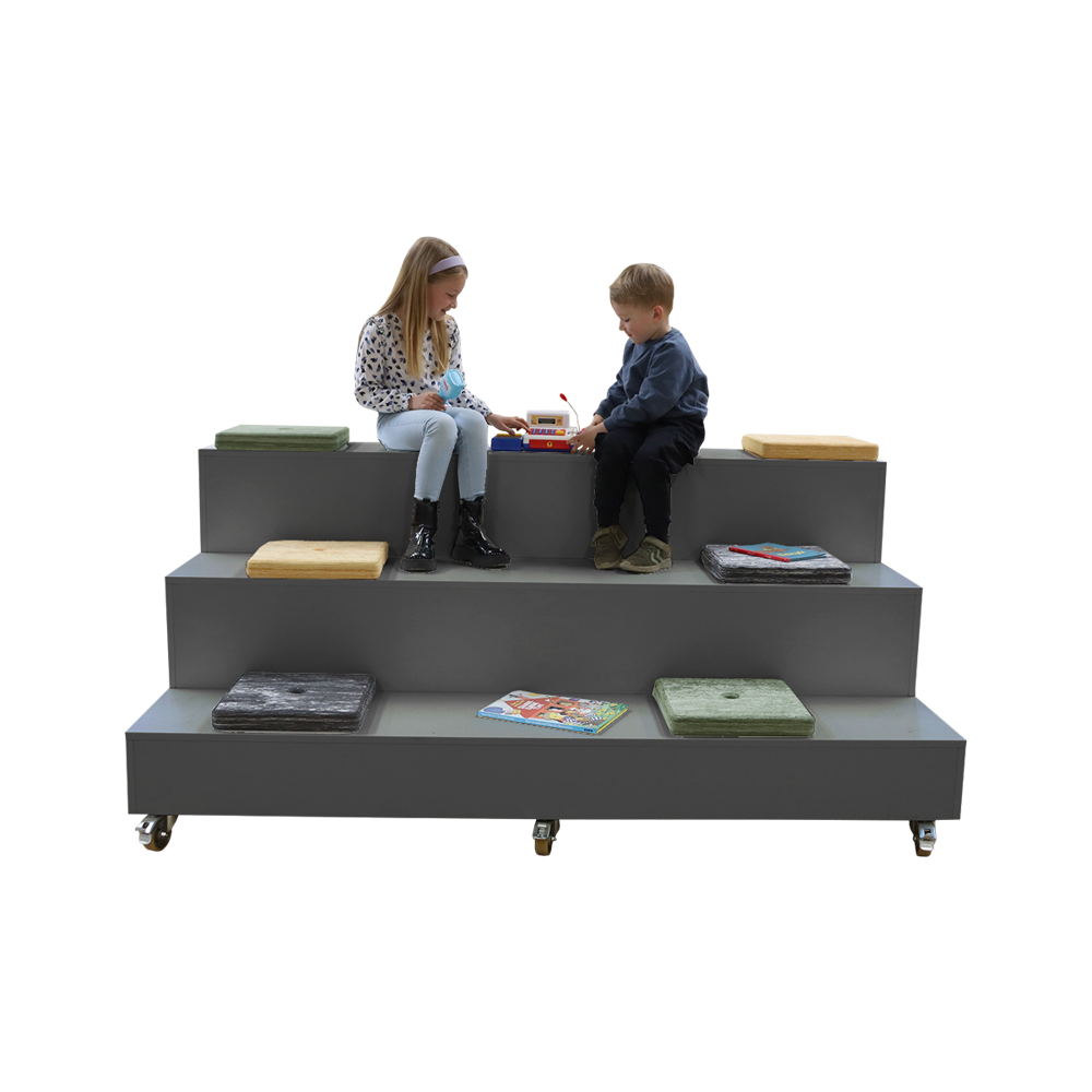 The seating podium and stage feature a strong and robust construction and can be used in all public libraries as well as cultural and educational institutions for children and adults of all ages.