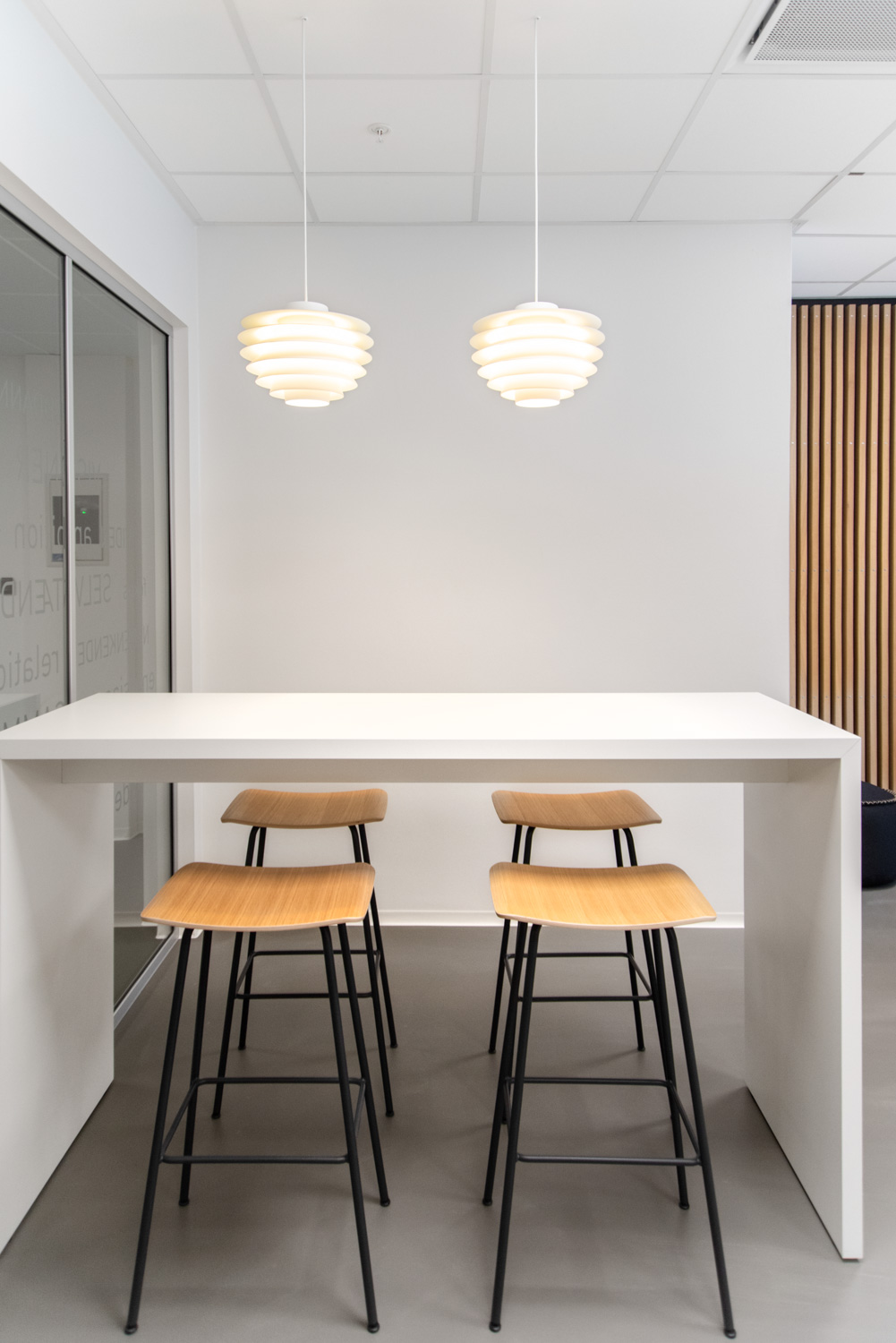 Verona is a prime example of functionalist design philosophy, in which form follows function. The need for glare-free lighting is achieved by bending and shaping the light around the ring shades.