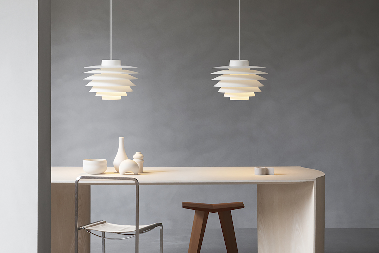 Verona was designed by Sven Middelboe in 1978. He managed to design the shades so there are no visible suspensions between the shades - making them almost flowing in air.