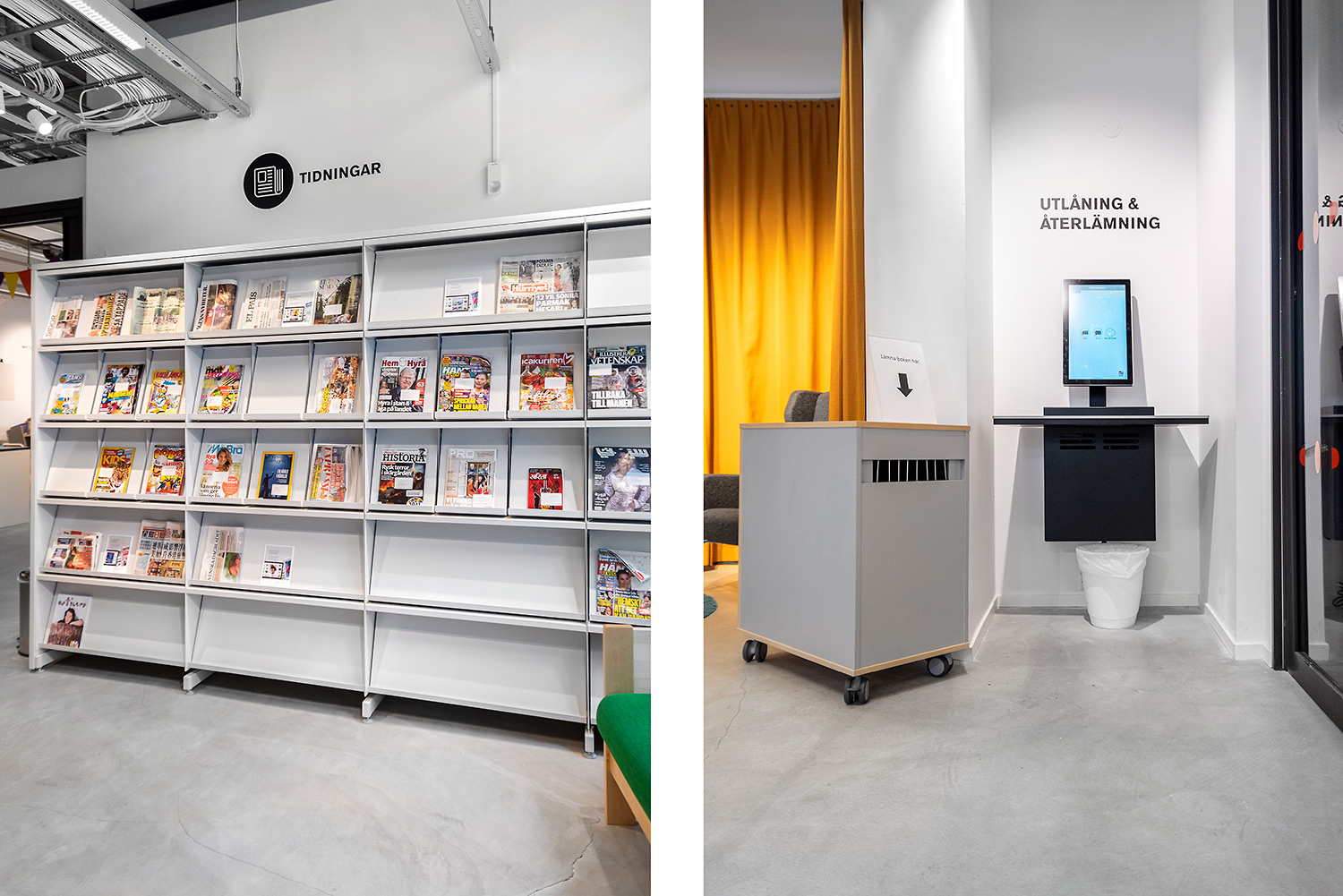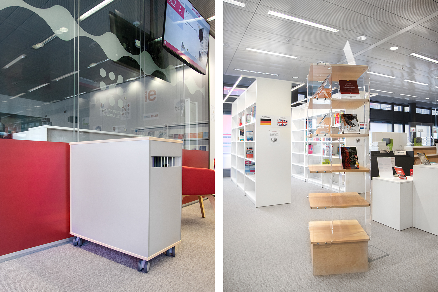 Mobile book return cabinet with a lockable side, for easy access to returned books.