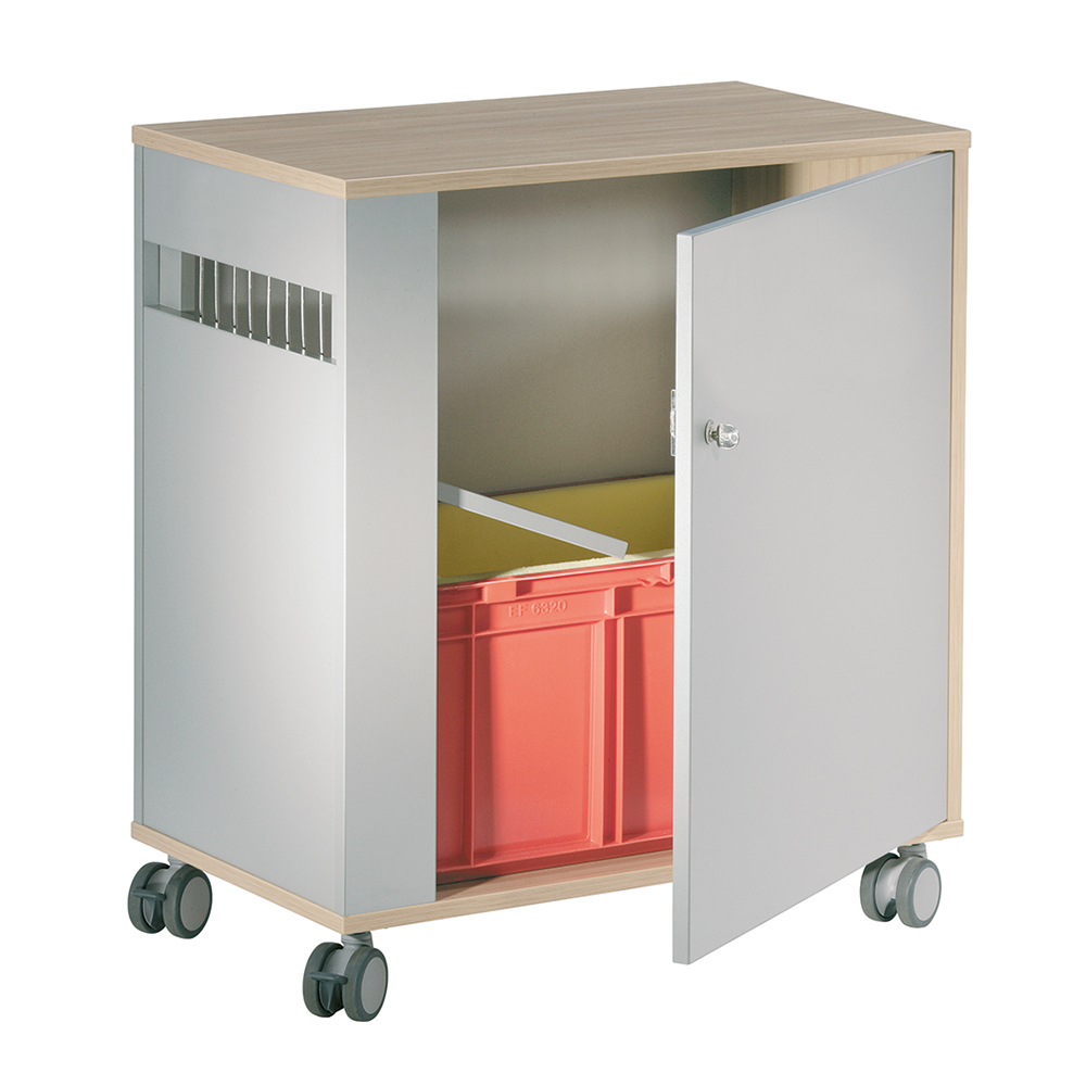 Easily positioned mobile and lockable cabinet